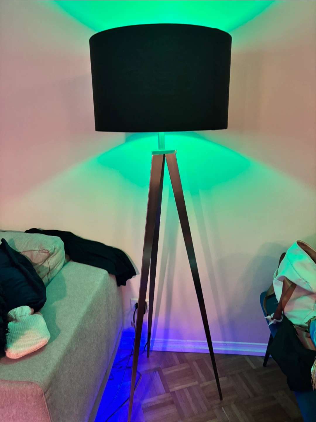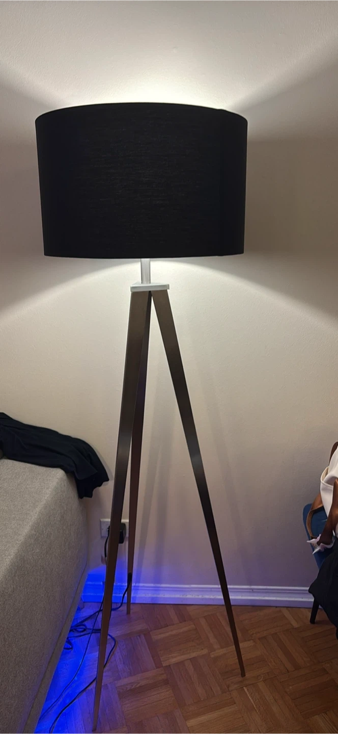 Selling a modern tripod floor lamp that comes with an Govee Smart LED bulb! ( incase you want it otherwise u can have it without a bulb) Lightly used good condition Brought from structube