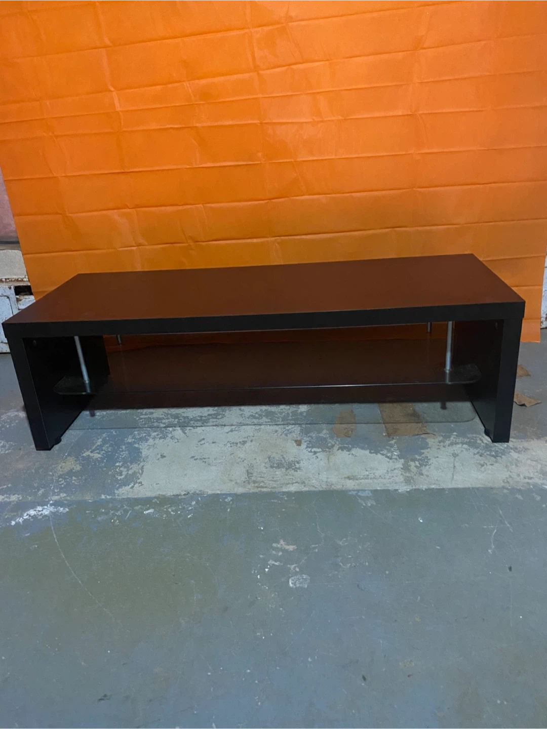 60Selling a black TV stand. It has a simple, modern design with a shelf for extra storage. Perfect for any living room setup!