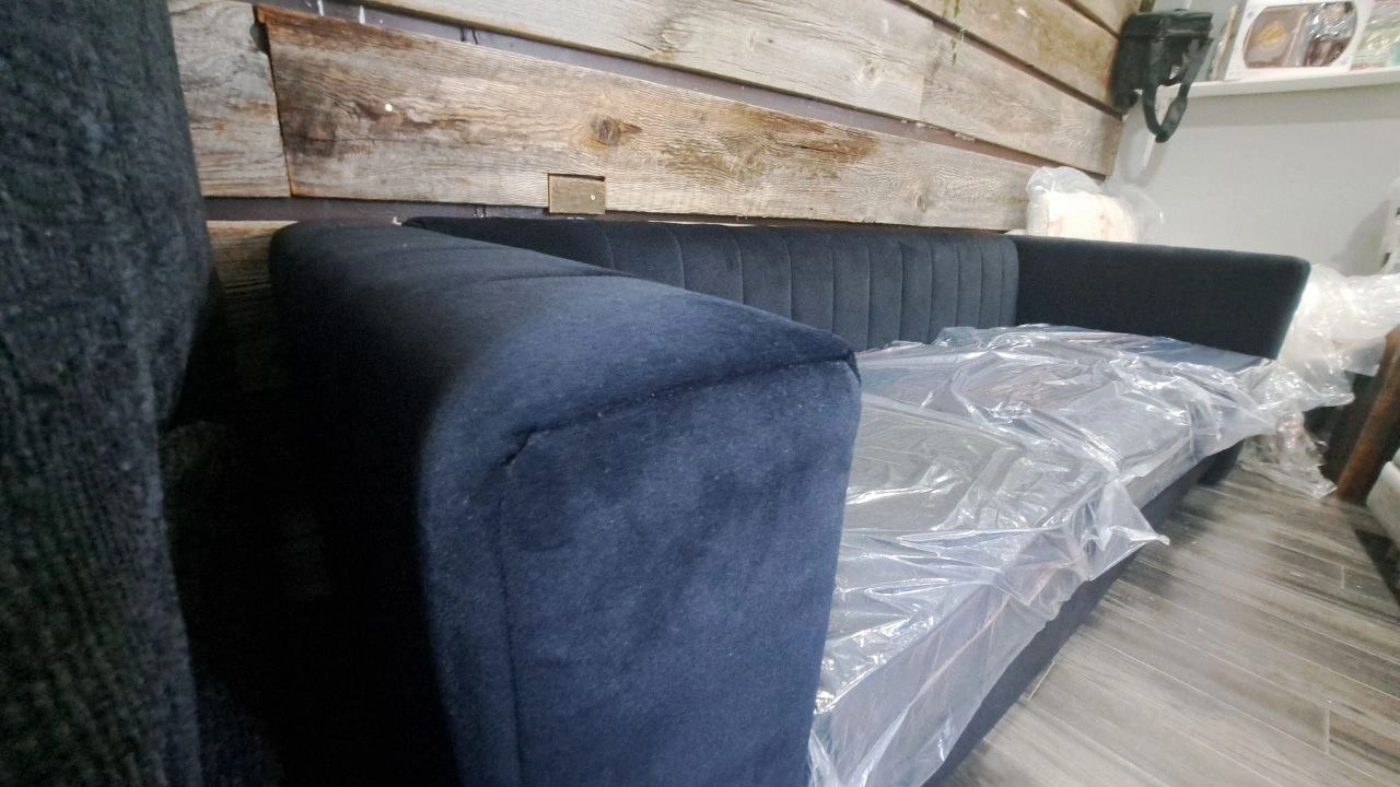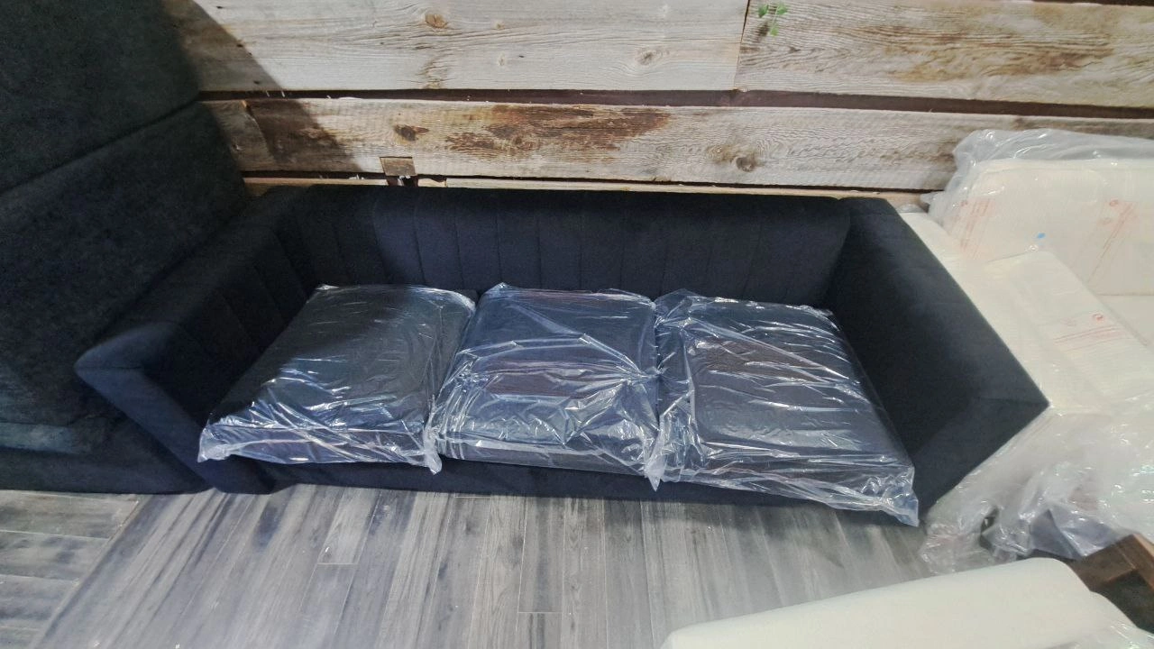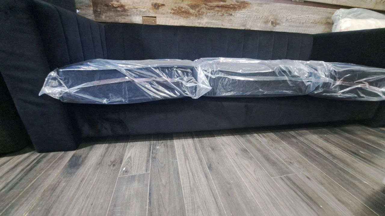 Selling a beautiful black velvet sofa in excellent condition! The cushions are still wrapped in plastic, so it's practically brand new. It's a stylish and comfortable piece that would look great in any living room. Don't miss out!