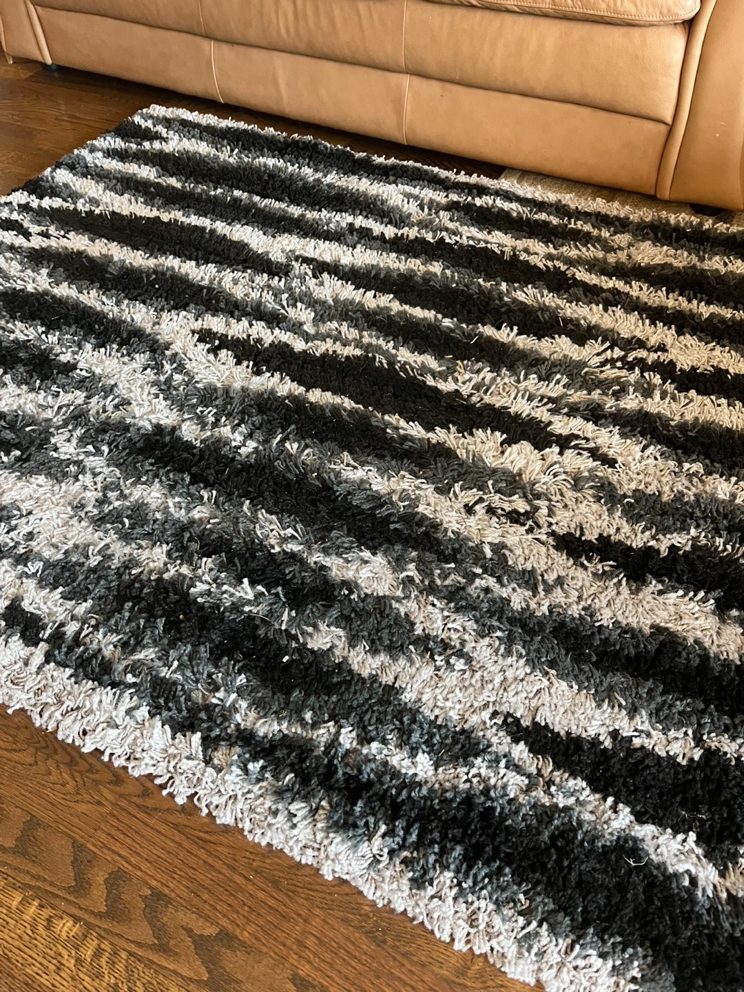 Looking to add some cozy vibes to your space? I'm selling this shag rug in black and white. It’s in great condition and ready for a new home! Perfect for adding texture and warmth to any room in your house