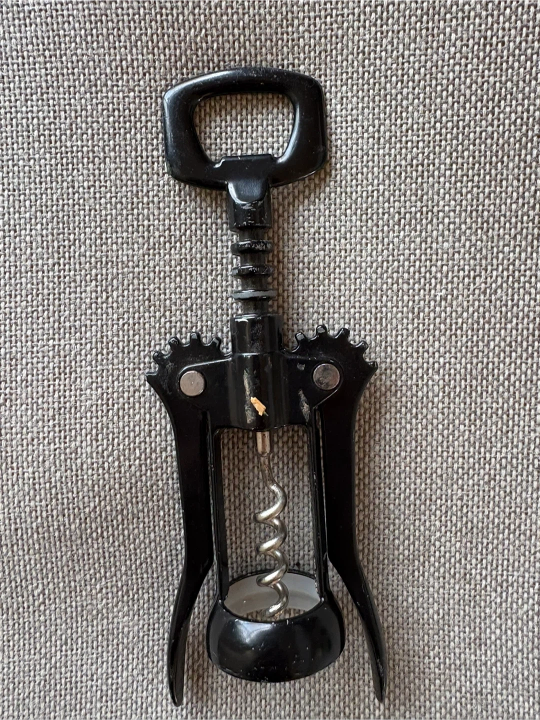 A classic black winged corkscrew for opening wine bottles or other corked beverages. It's in used condition but works perfectly fine!pick up at Morley trail NW