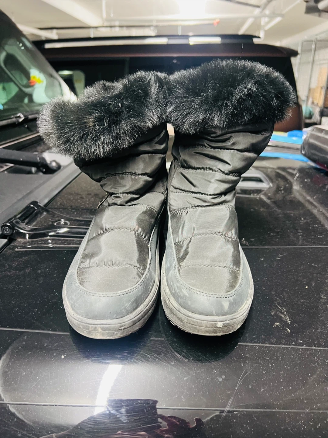 Cozy black winter boots in size 6! These are perfect for keeping your feet warm and dry during the cold Canadian months. They feature a furry trim for extra warmth and style. Great for everyday wear or outdoor adventures Pick up only cash only Winter boots size 6 like new Check my other listings