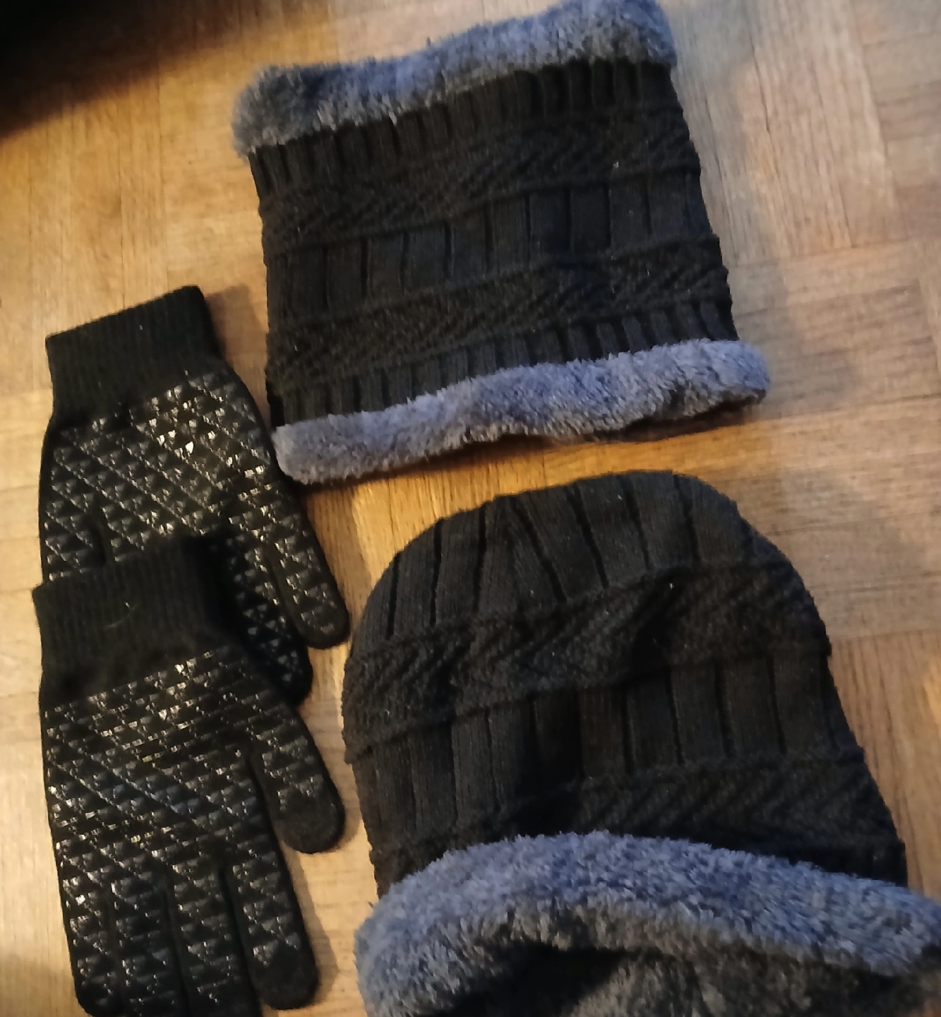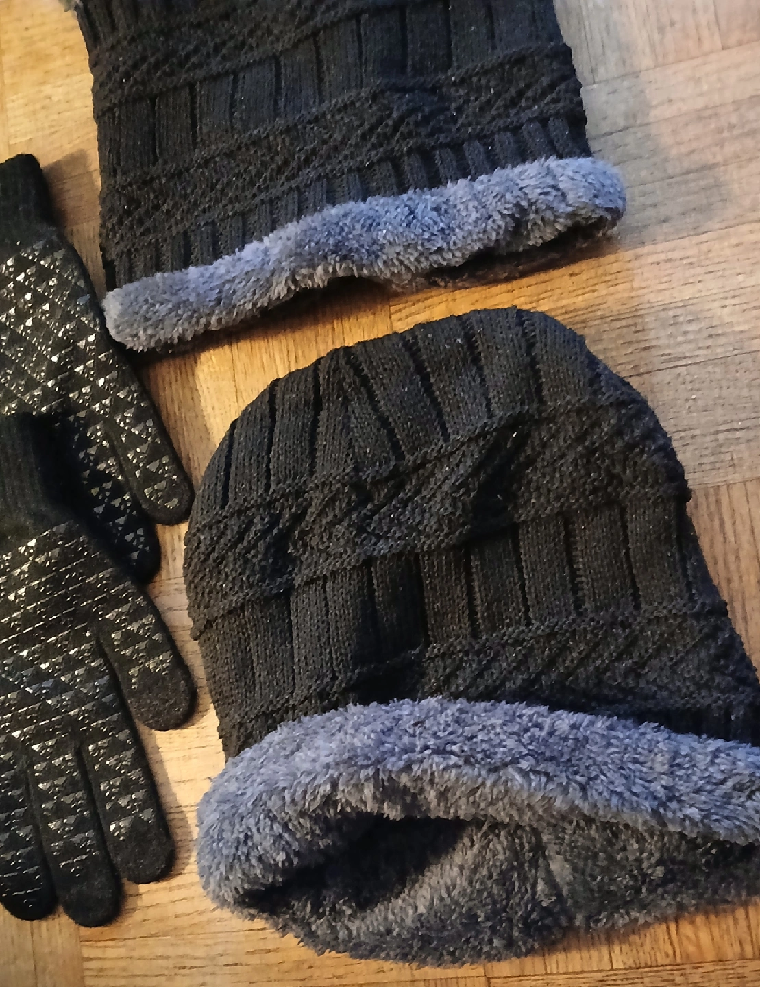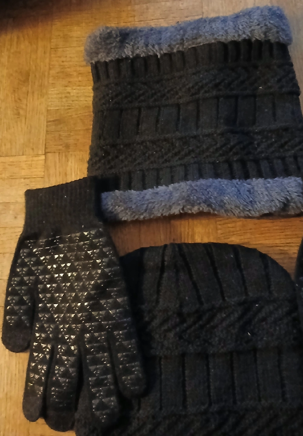 1000+Selling a cozy black winter set that includes a hat, scarf, and gloves! The set is in great condition and perfect for keeping warm during the cold Canadian winters. The gloves have grips on the palm for extra security. The hat and scarf are lined with soft, fuzzy material for extra comfort