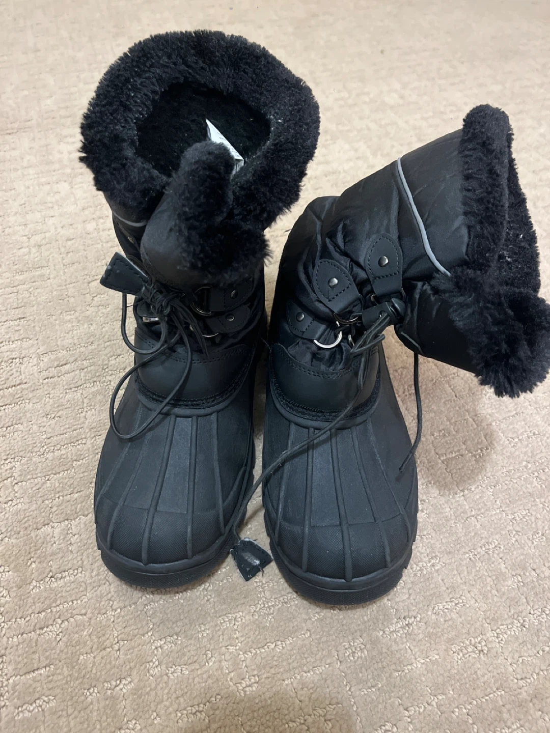 10Selling a pair of kids black winter snow boots. They are in good condition and ready for the snow! Size 6.
