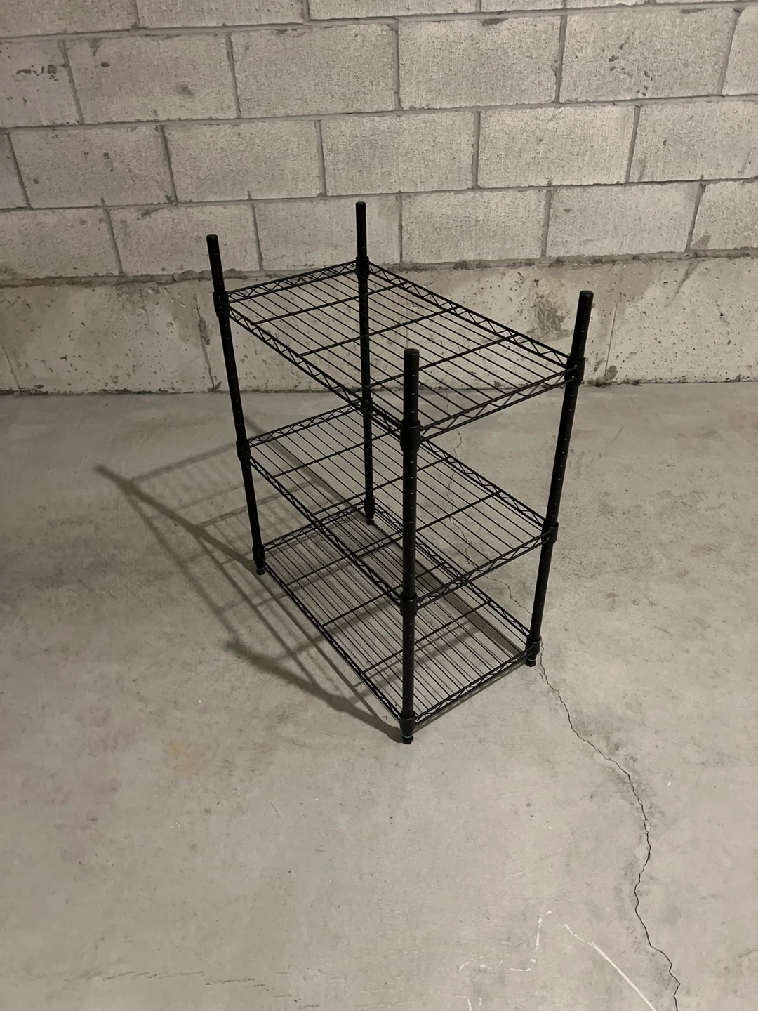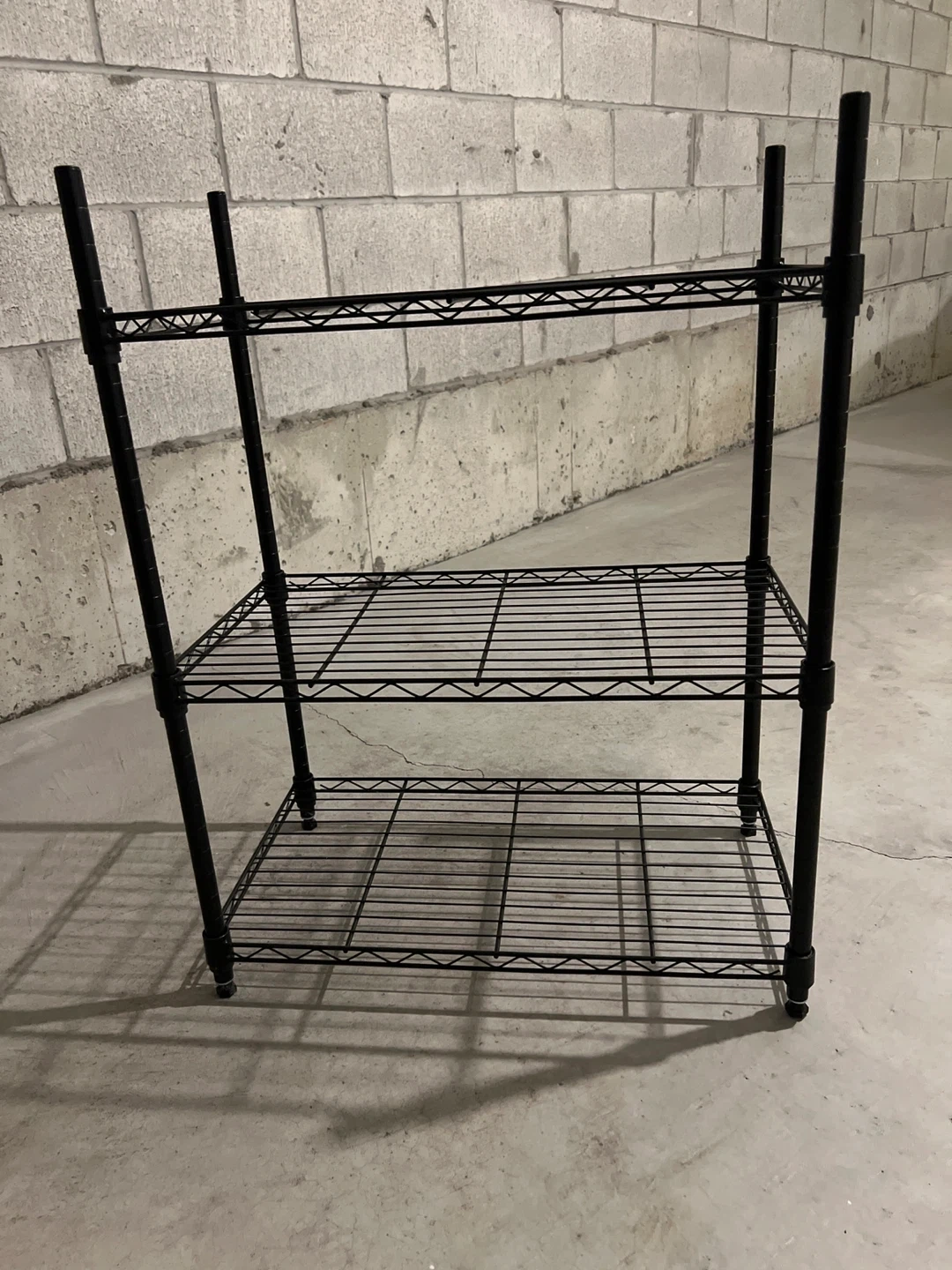 Here's a handy adjustable black wire shelf unit that's perfect for organizing your space! It's in great shape and ready to help you tidy up your home or storage area I have 4 of these