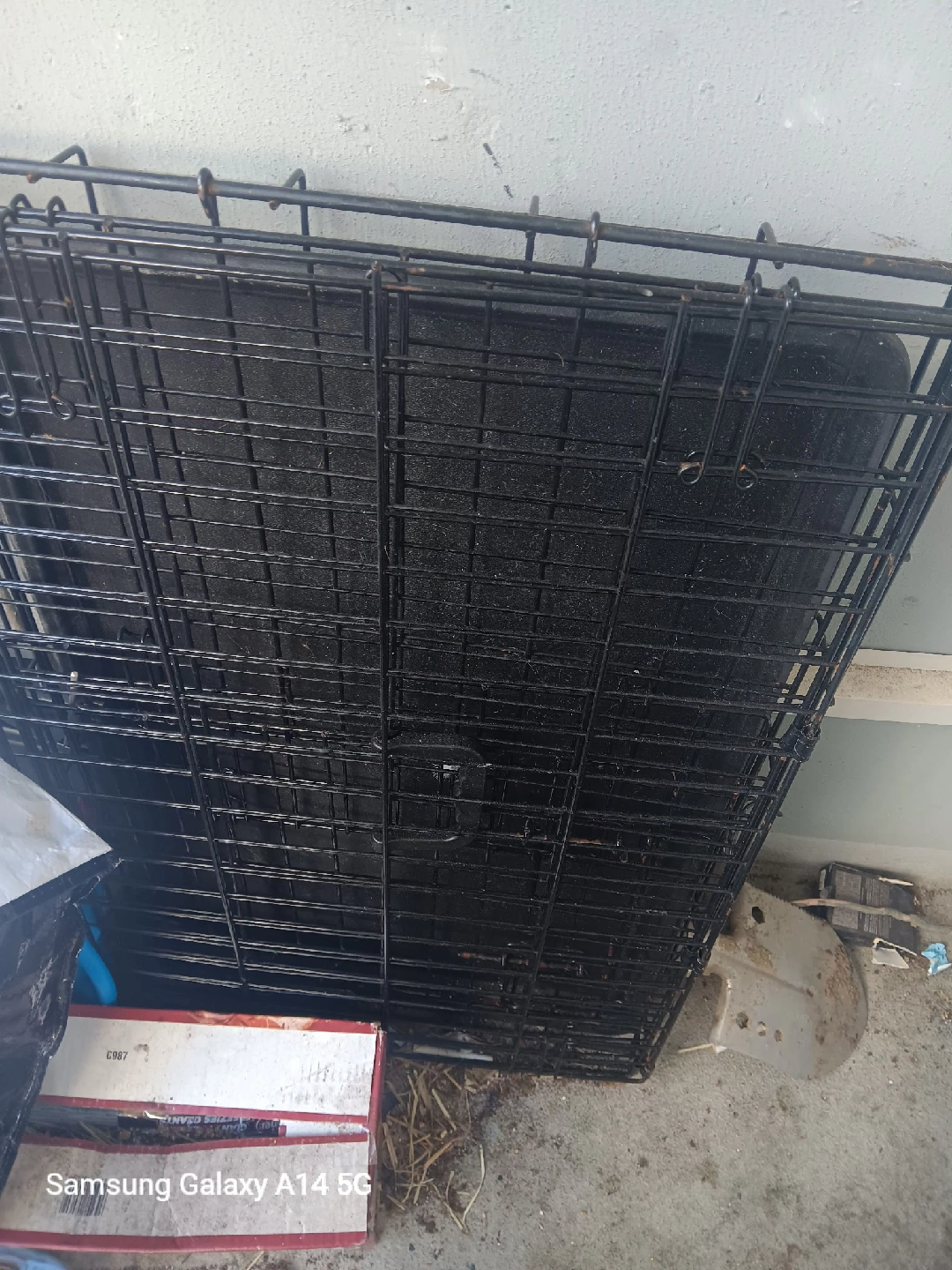 1000+one black wire dog crate left . It's in used condition but still has plenty of life left. Perfect for training or providing a safe space for your furry friend! $ 5 647-203-0411