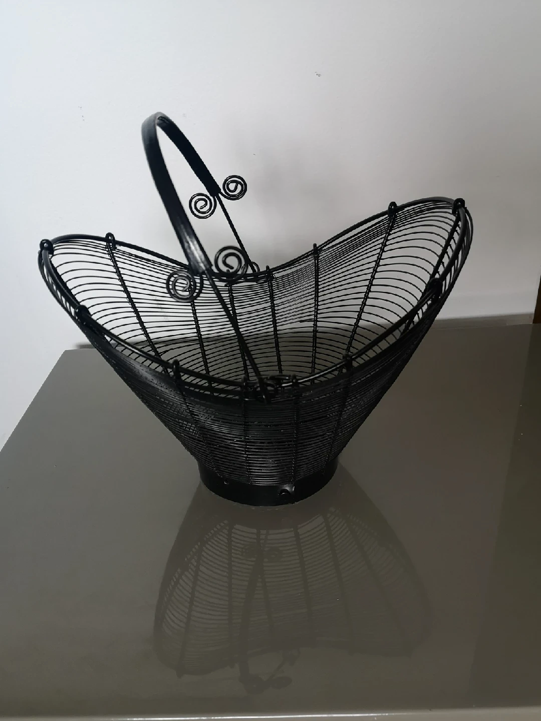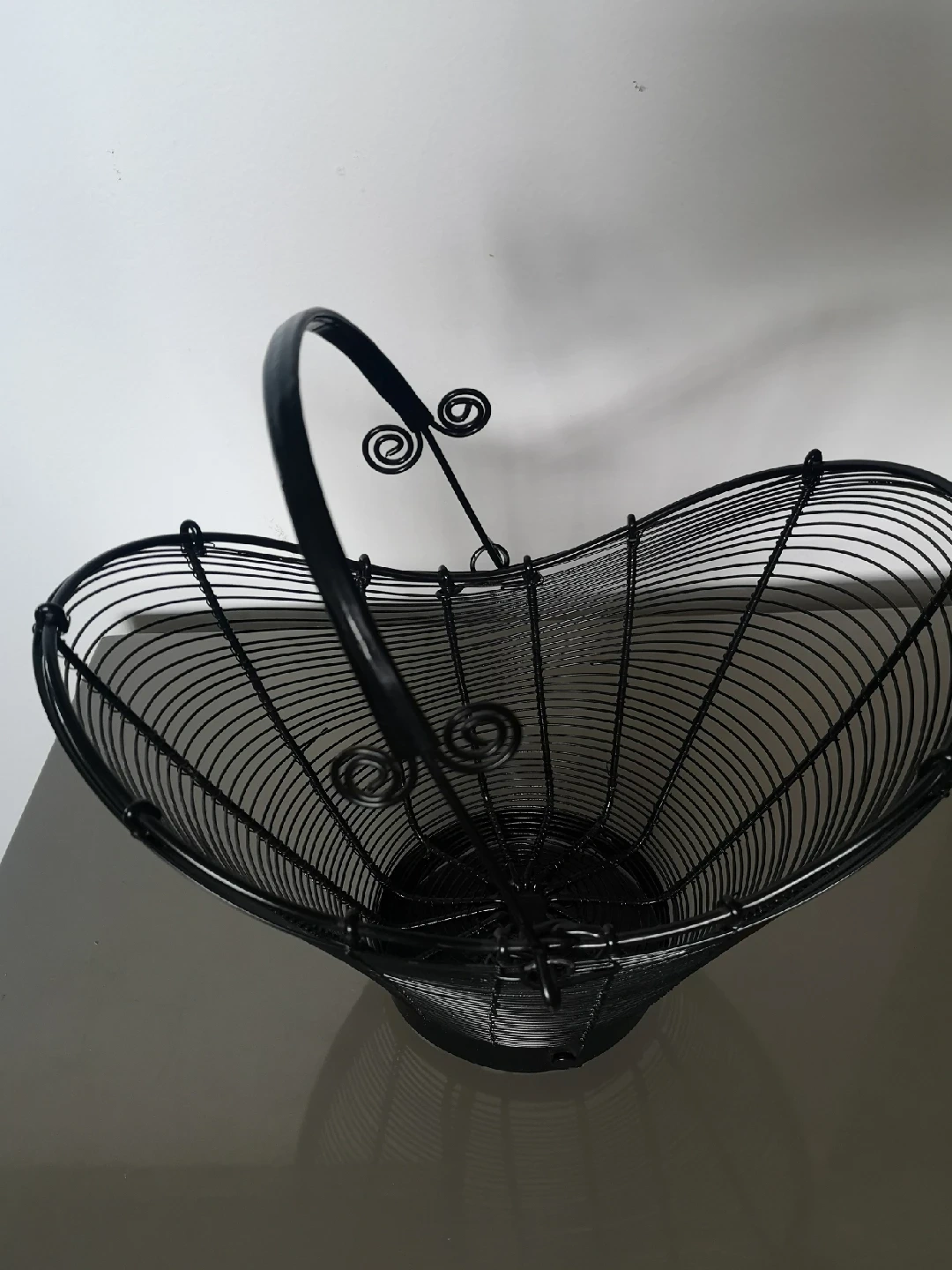 Selling a stylish black wire fruit basket! It's perfect for displaying your fruits and veggies on the countertop or dining table. The handle makes it easy to carry around, and the wire design allows for air circulation to keep your produce fresh longer