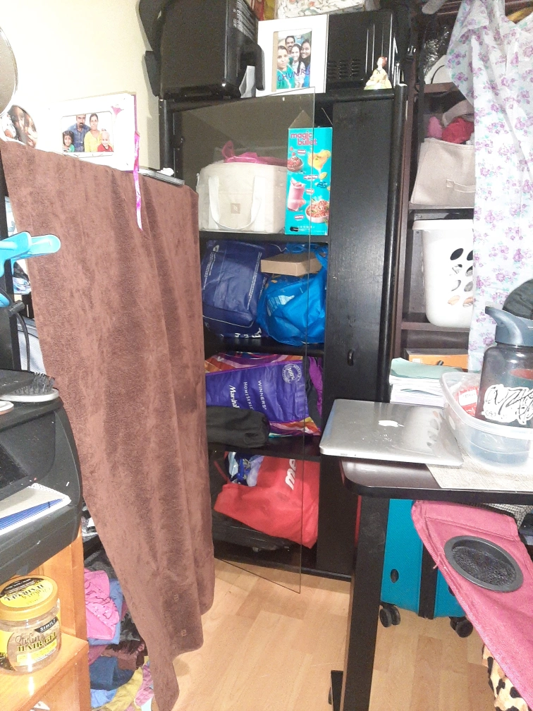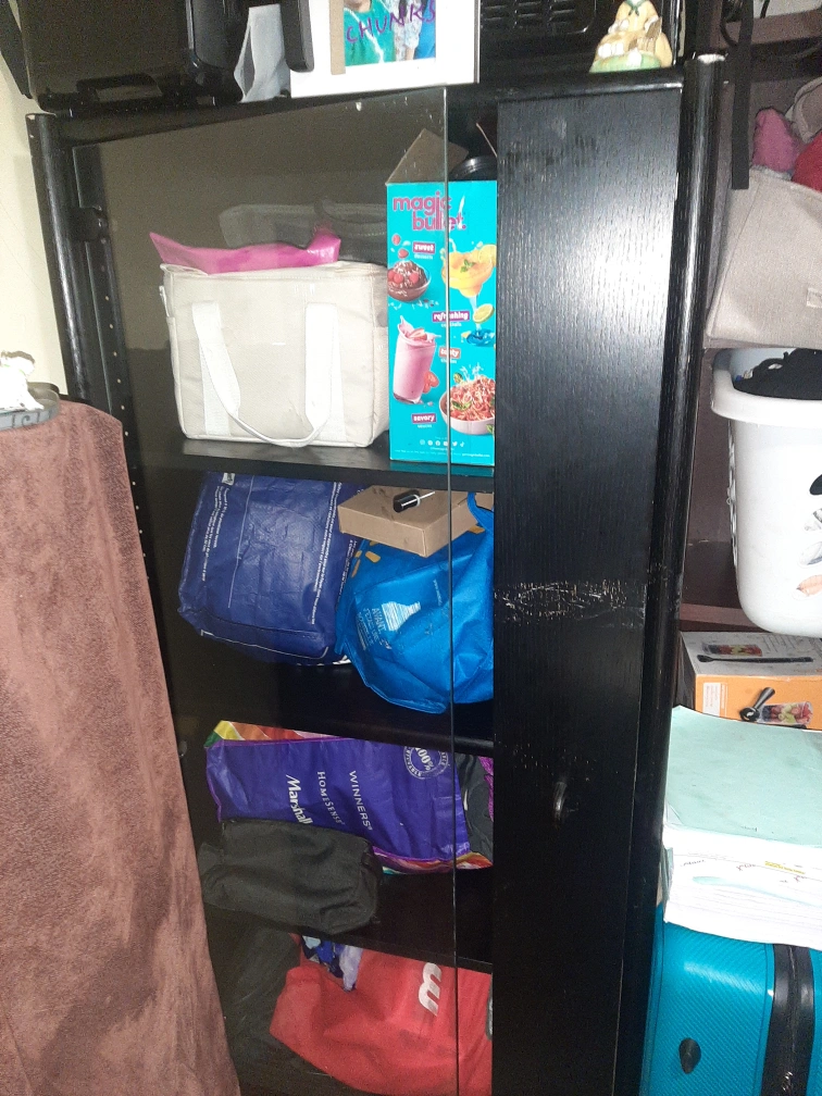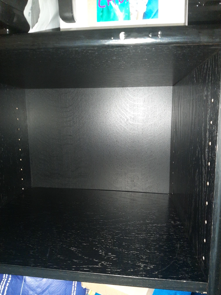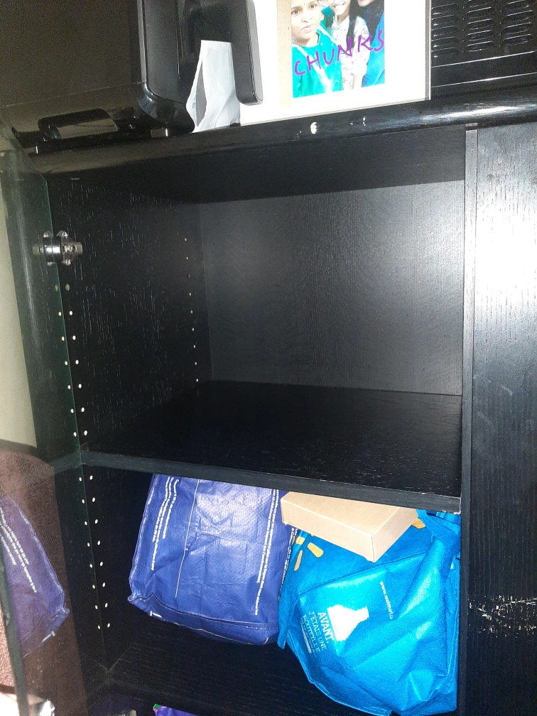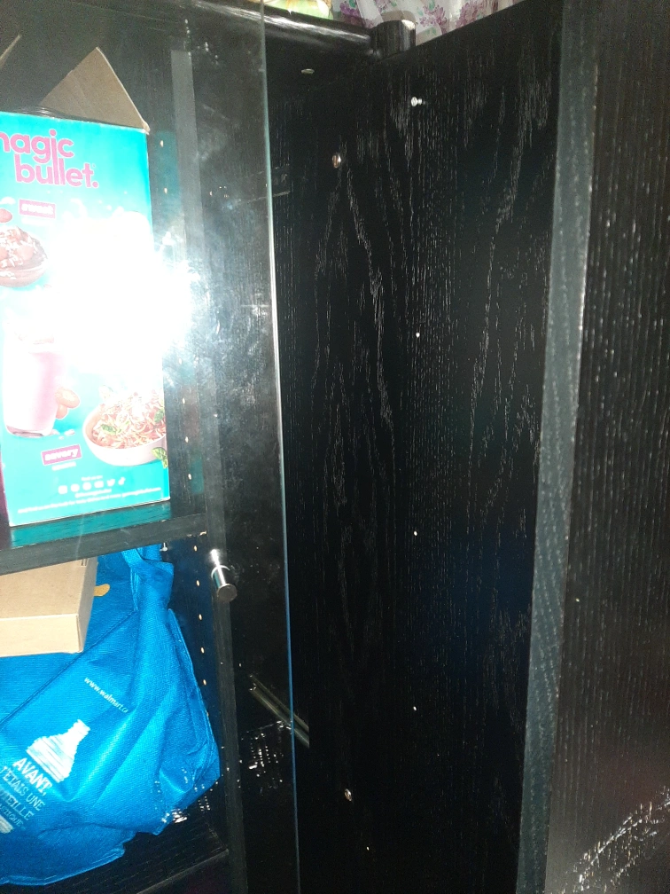 Selling a black wooden cabinet with a glass door! It has a sleek and modern look. Great for storage in any room of the house. It appears to be in good condition, ready for a new home!