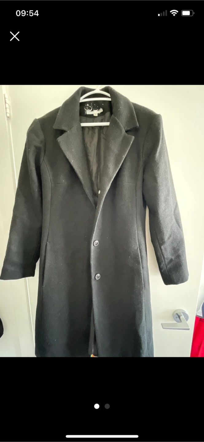 Selling a Manteaux coat in black! It's a stylish piece made with a blend of 50% laine wool and 50% nylon wool for the exterior, and a 100% polyester lining