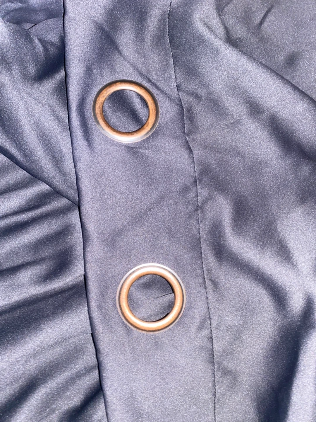 Selling a black blackout curtain. It has grommets at the top for easy hanging. Good for keeping out light and adding privacy to any room!