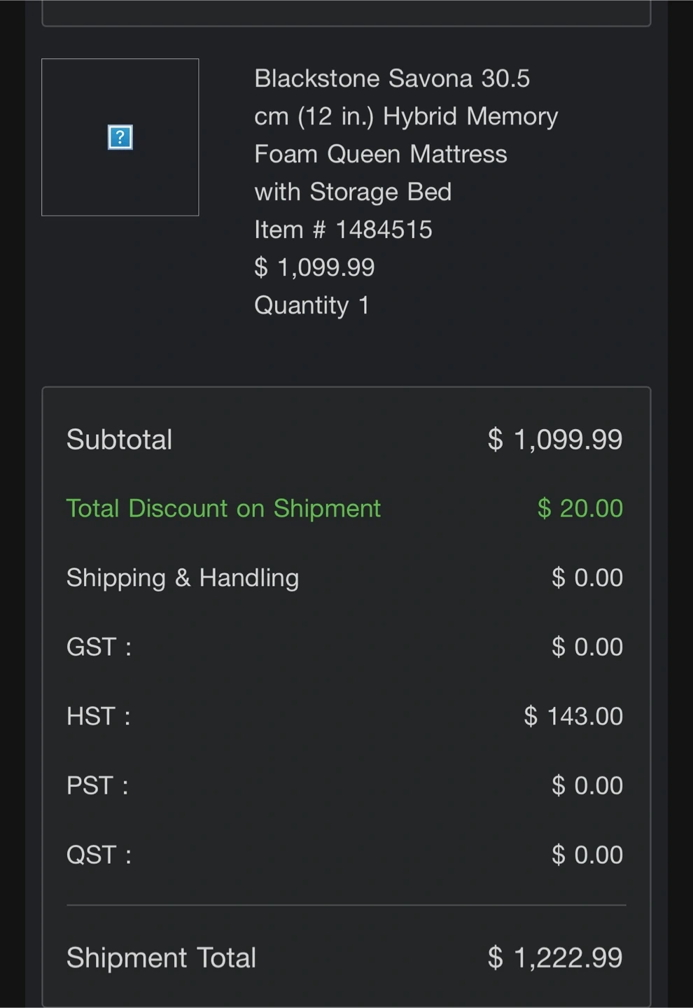 60Selling Queen size Blackstone Savona 30.5 cm (12 in.) hybrid memory foam queen mattress with storage bed. It's in great shape and ready for a new home! Originally bought for $1222.99.