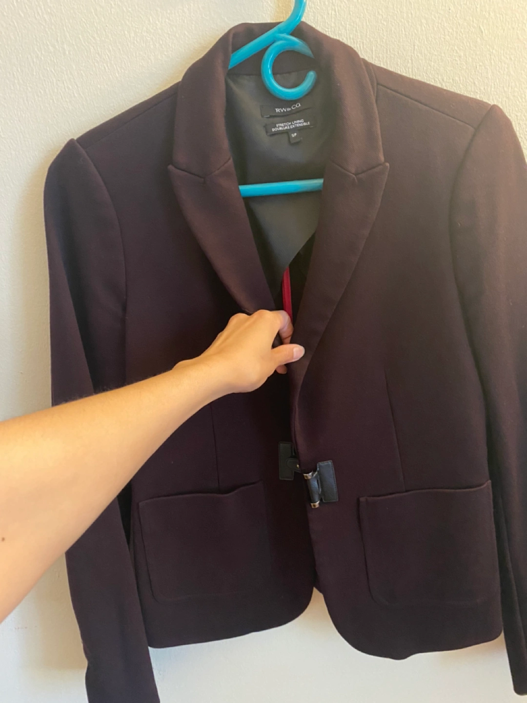 Burgundy wool blazer, fitted style. Gives you boss lady feelings. From RW&co , amazing quality and excellent condition Condition: EXCELLENT Condition guide Brand: RW&Co Colour: Burgundy Original price: $199.99 Material: Wool / polyester