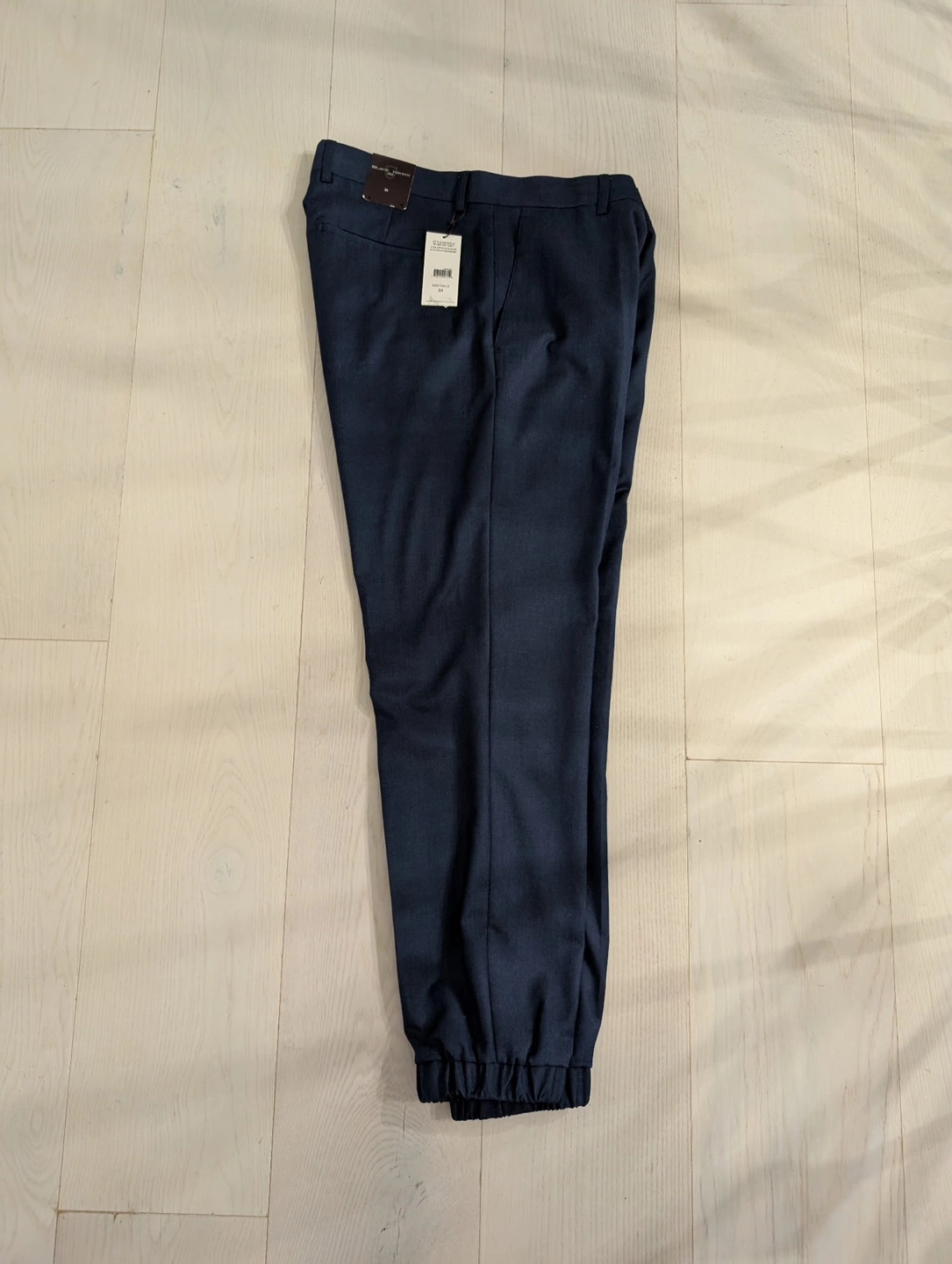 109Men's navy blue trousers. Cuffed bottoms. Elastic waistband. Size 34. New with tags.