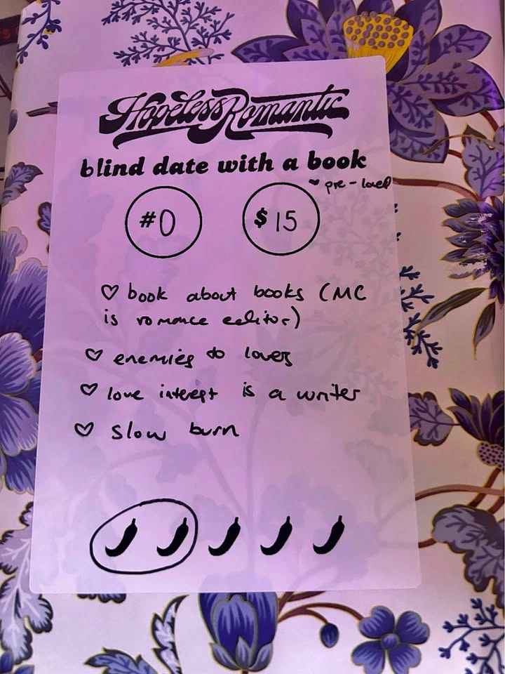 Have a cozy date night in with your brand new blind date with a book ๐ Brand new book Spicy romance Only 2 peppers ๐ถ๏ธ ๐ถ๏ธ Slow burn Enemies to lovers