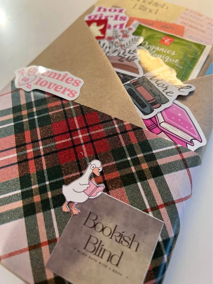 61FAKE DATE, REAL SPARKS. Your Coziest Night In, Delivered. Blind Date with a Book: Romantic Comedy The Book: She hired an actor to be her fake date for a wedding, but their performance might just lead to a real romance. (Highly-rated 3.89 on Goodreads!) The Swag: Bookmark, stickers, review card, page tabs, and organic tea. It's the perfect self-treat! π Matchmaking Service Available: Tell me your favorite genres! I have 200+ books to find your perfect match!