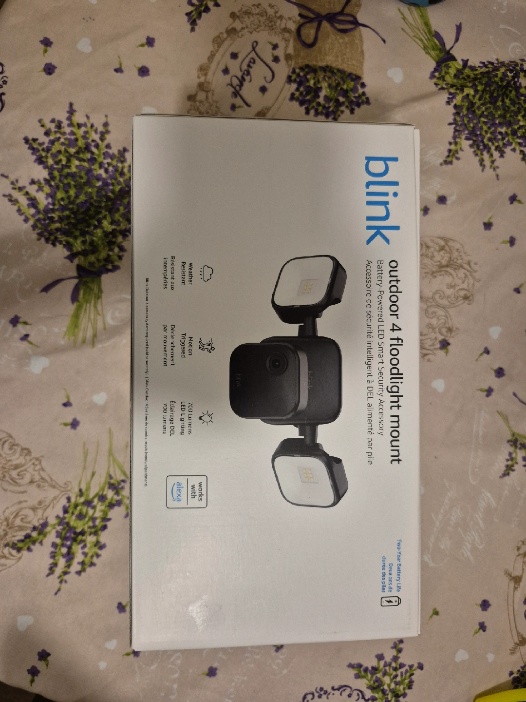 Selling a brand new Blink Outdoor 4 Floodlight Mount! This is a battery-powered LED smart security accessory. It's weather resistant and motion triggered. The LED lighting provides 700 lumens and works with Alexa. Batteries included!