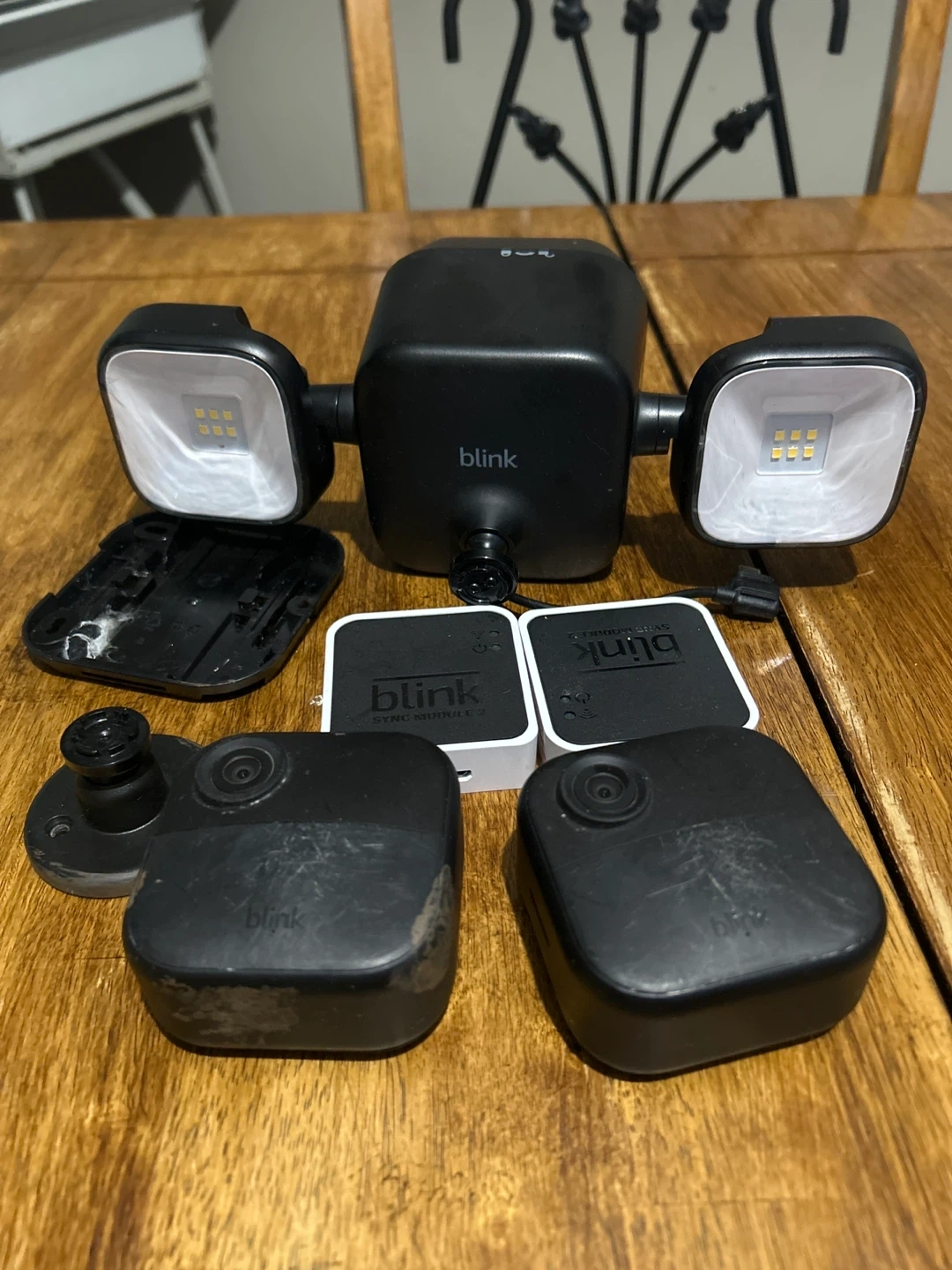 111Selling a Blink outdoor security camera system. One flood light the other is just camera with it’s mount It comes with the sync module and two cameras. Perfect for keeping an eye on your property! Sold as is as I didn’t try to connect them just remove them