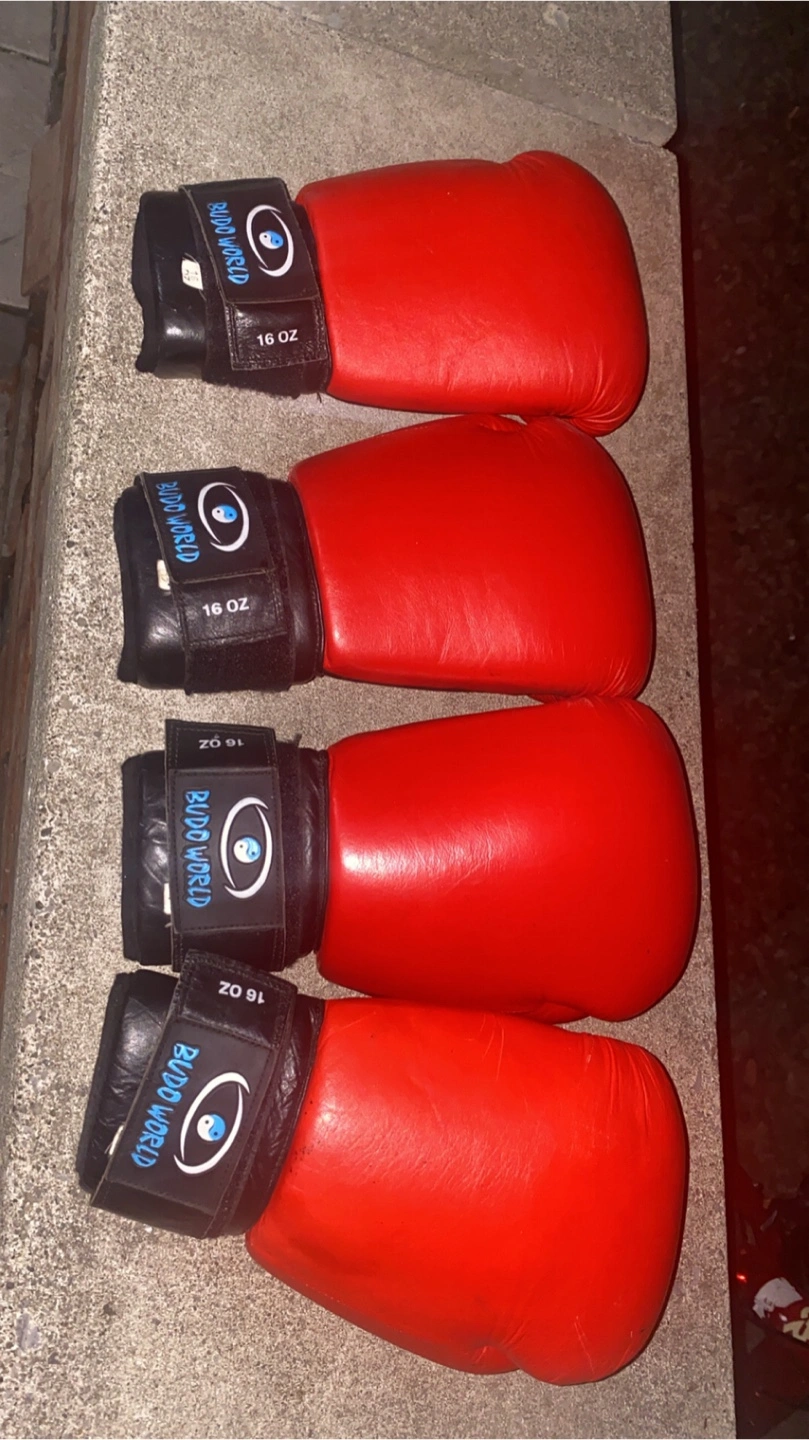 Selling a set of four Blood World boxing gloves. They are 16 oz each and in used condition. Perfect for sparring or training! 1 pair is 25$ Both pairs is 50$
