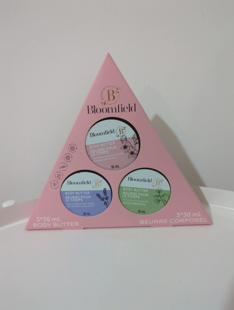 287Three 30ml body butters. Lavender and Jasmine scent, Lemon and Vanilla, and Eucalyptus and Wild Mint. Comes in a pink triangular box. ⭐Pickup: Around Warden & Steeles ⭐Cash Only* ⭐ Responding to serious inquiries only ⭐ Price is firm