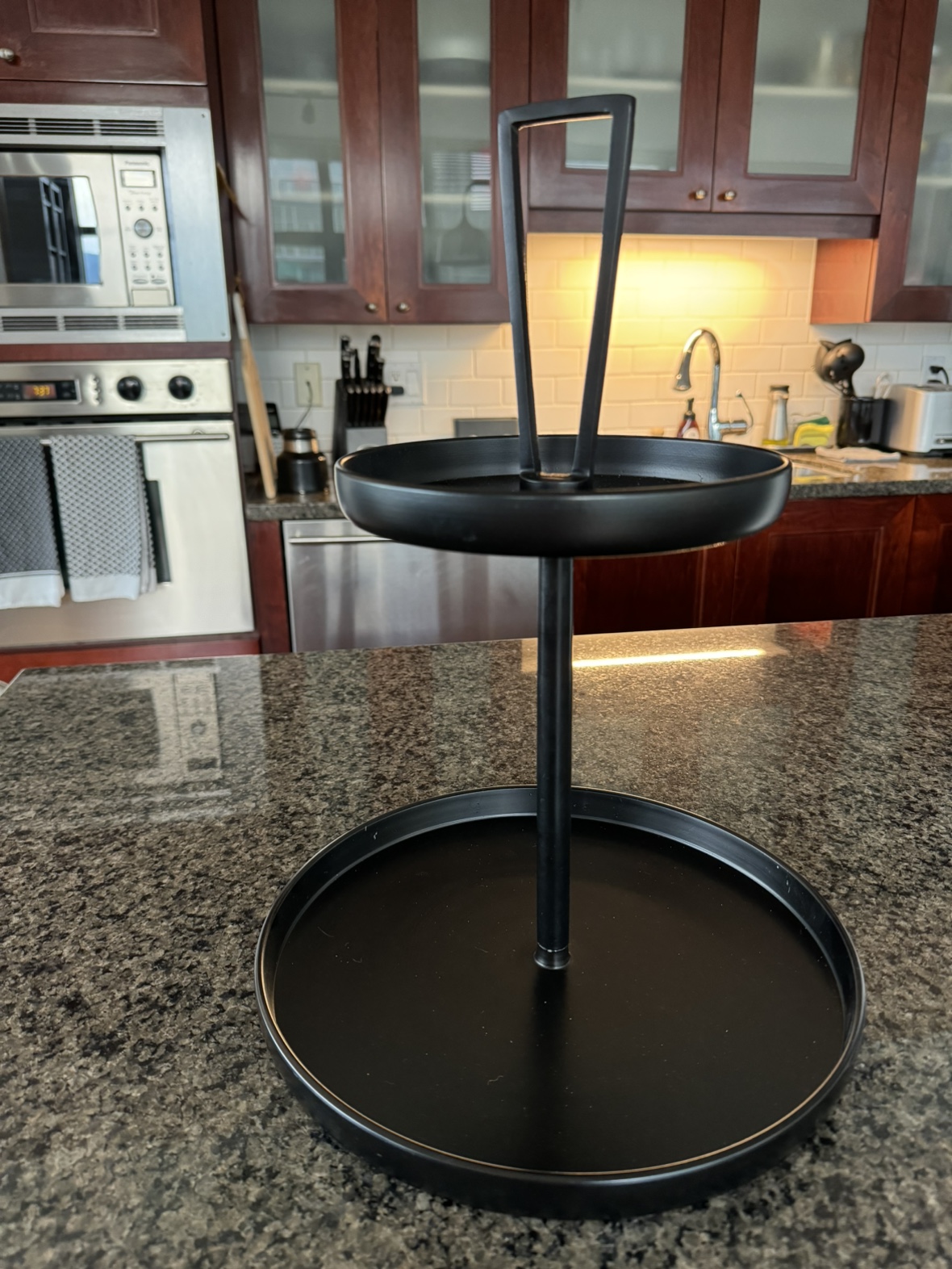 15Bloomingville Decorative Black Metal 2-Tier Round Tray Dimensions: 12.5” x 12.5” x 16.5”