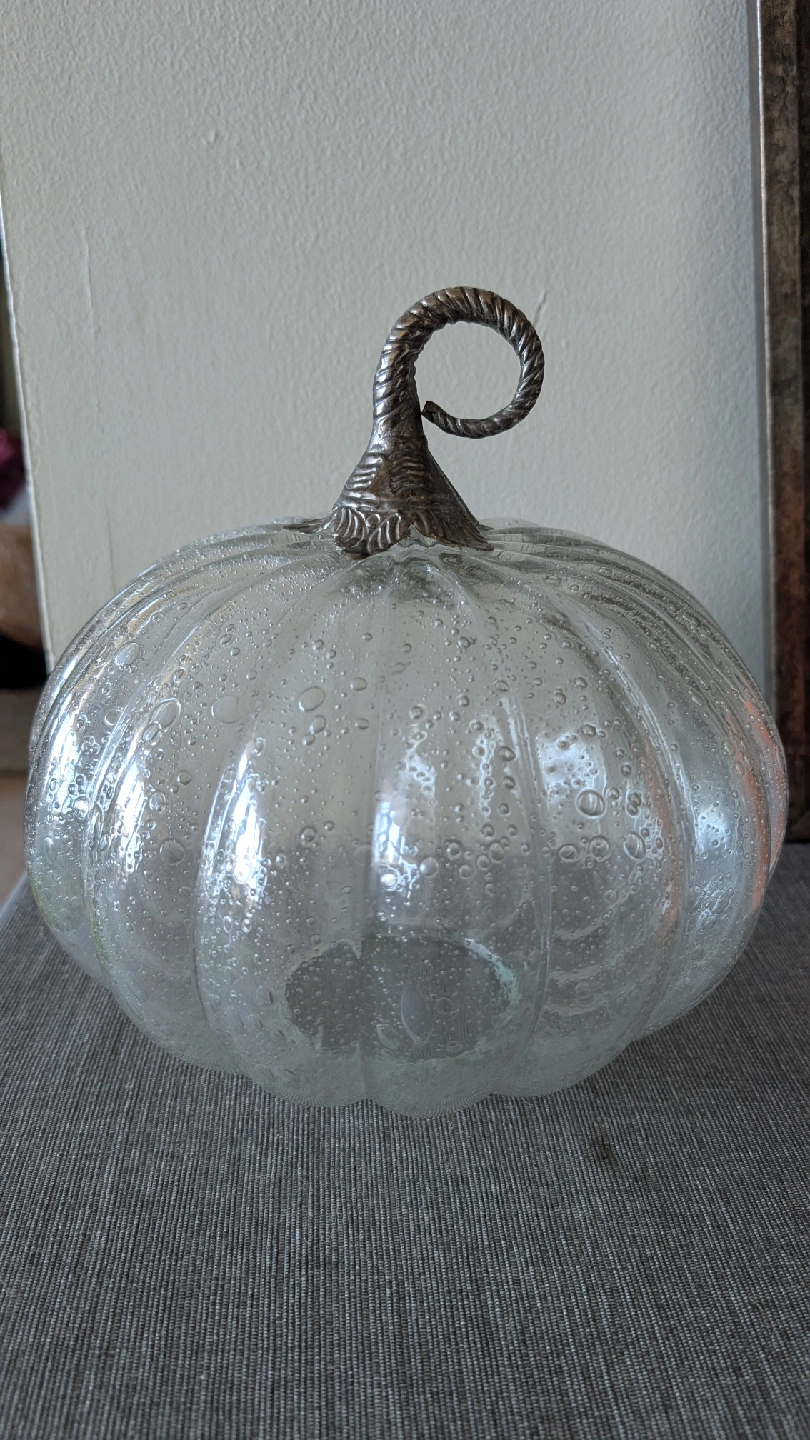 Selling a lovely clear glass pumpkin with a metal stem pick up near civic hospital CASH ONLY