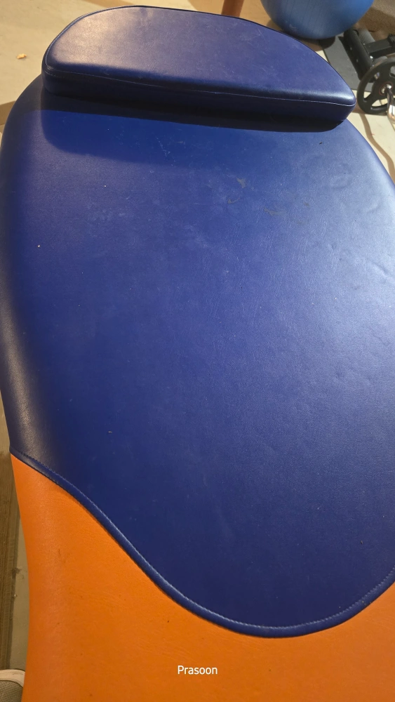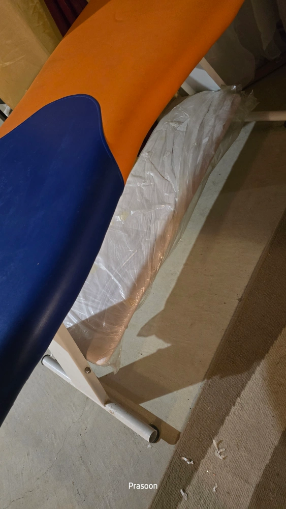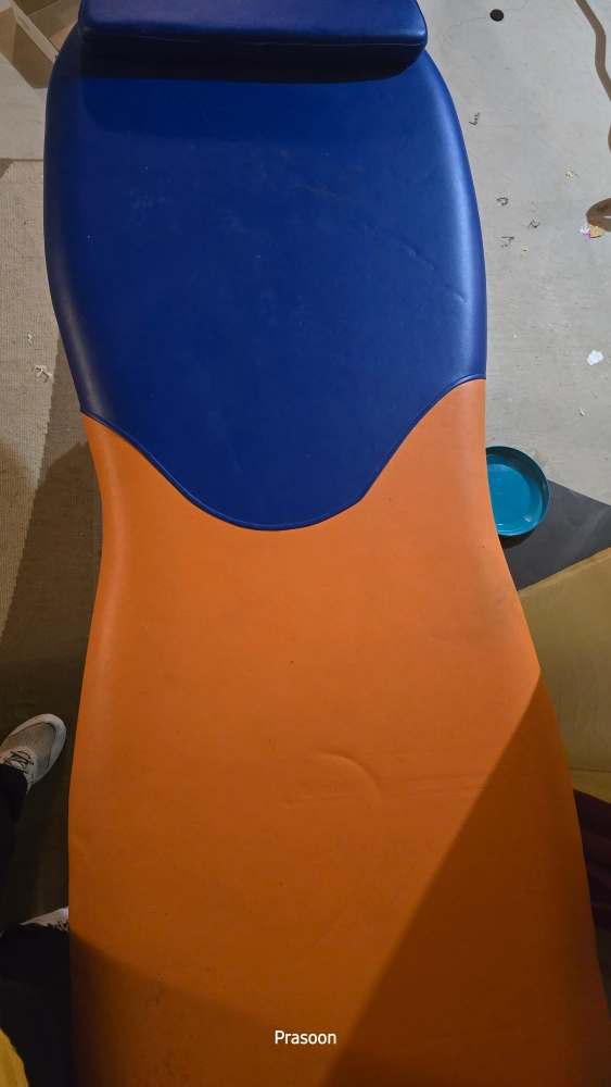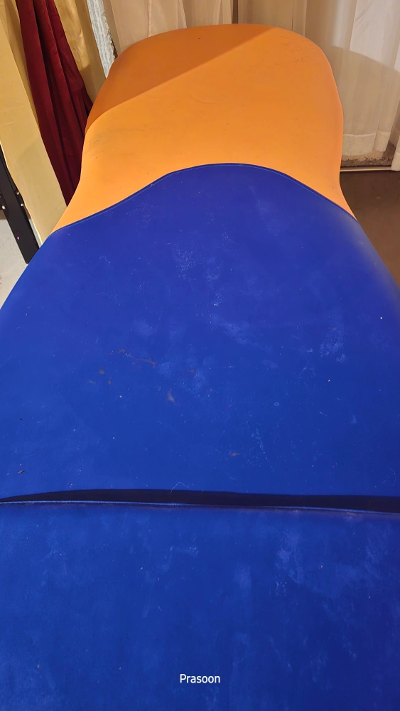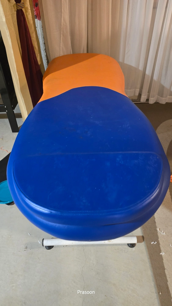 Selling a blue and orange spa or massage bench. It's in good condition and ready for a new home or spa.
