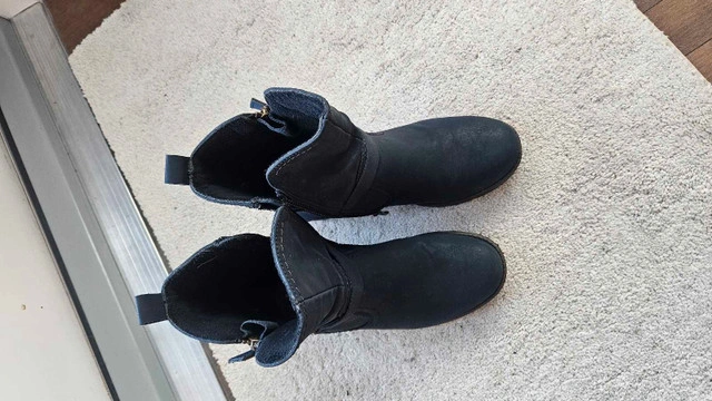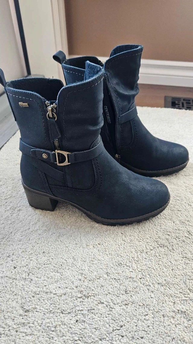 12Blue ankles boots. Excellent condition, only worn a couple of times. Brand is Pavers from the UK. Perfect for the fall to compliment that outfit Size is US 6.5 / UK 4 Location is in Cochrane.