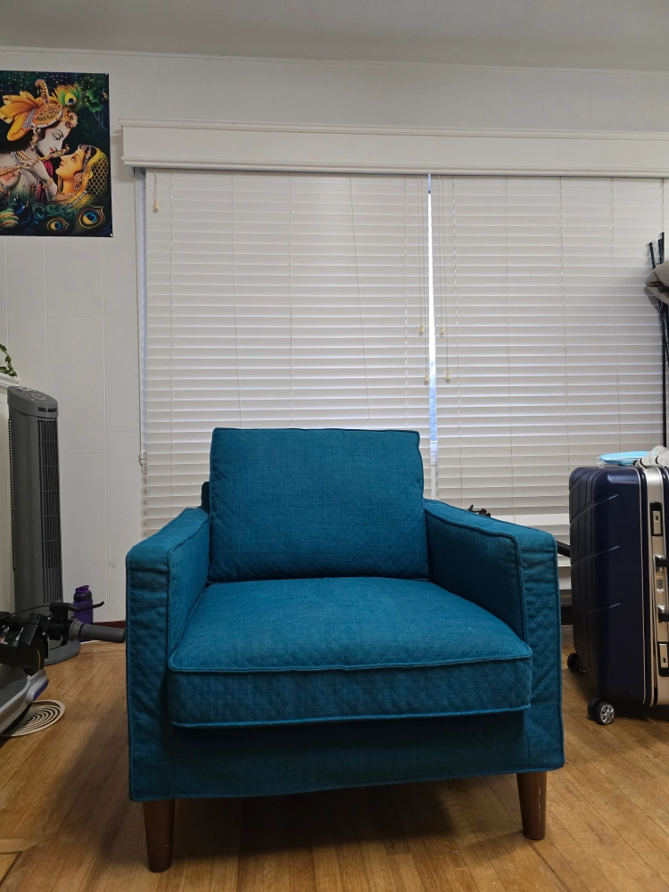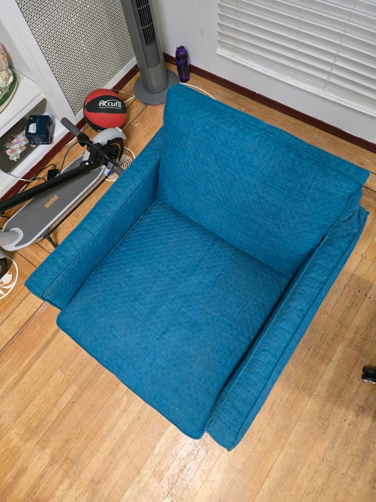 Looking to add a pop of colour and comfort to your space? I'm selling this lovely blue armchair! It's in great shape and ready to find a new home. Perfect for cozying up with a good book or adding extra seating to your living room/bedroom.