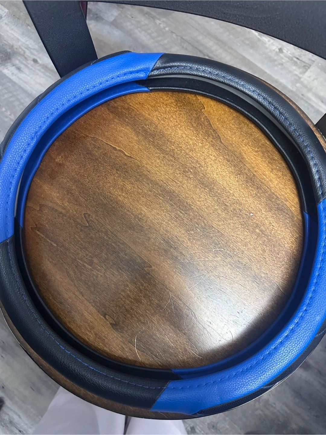 29Steering wheel cover in great condition! It's blue and black and made of a leather-like material. It would be a great addition to any car!