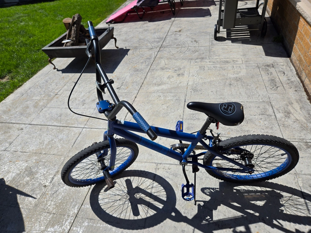 Selling a blue BMX bike. It's in good condition and ready to ride! Perfect for getting around town or hitting the skate park. The tires are in good shape and the frame is sturdy.
