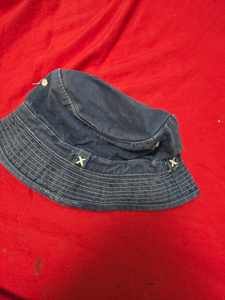 505Here's a cute blue bucket hat! It features a simple design with white 'X' details around the brim. Perfect for adding a bit of casual style to your outfit!