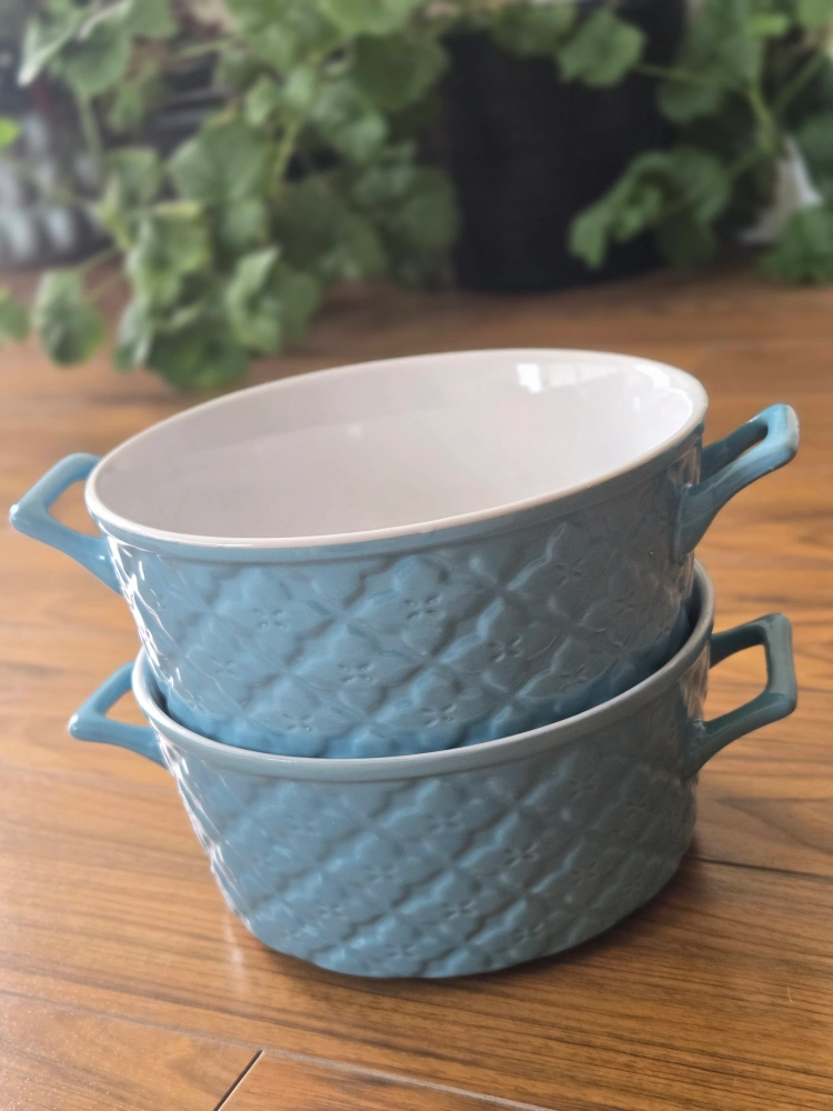 Selling a set of two lovely blue ceramic casserole dishes! They’re in great shape and ready for your next potluck or family dinner. The textured pattern adds a nice touch to your table setting, and the handles make them easy to carry. Perfect for baking or serving your favourite dishes!