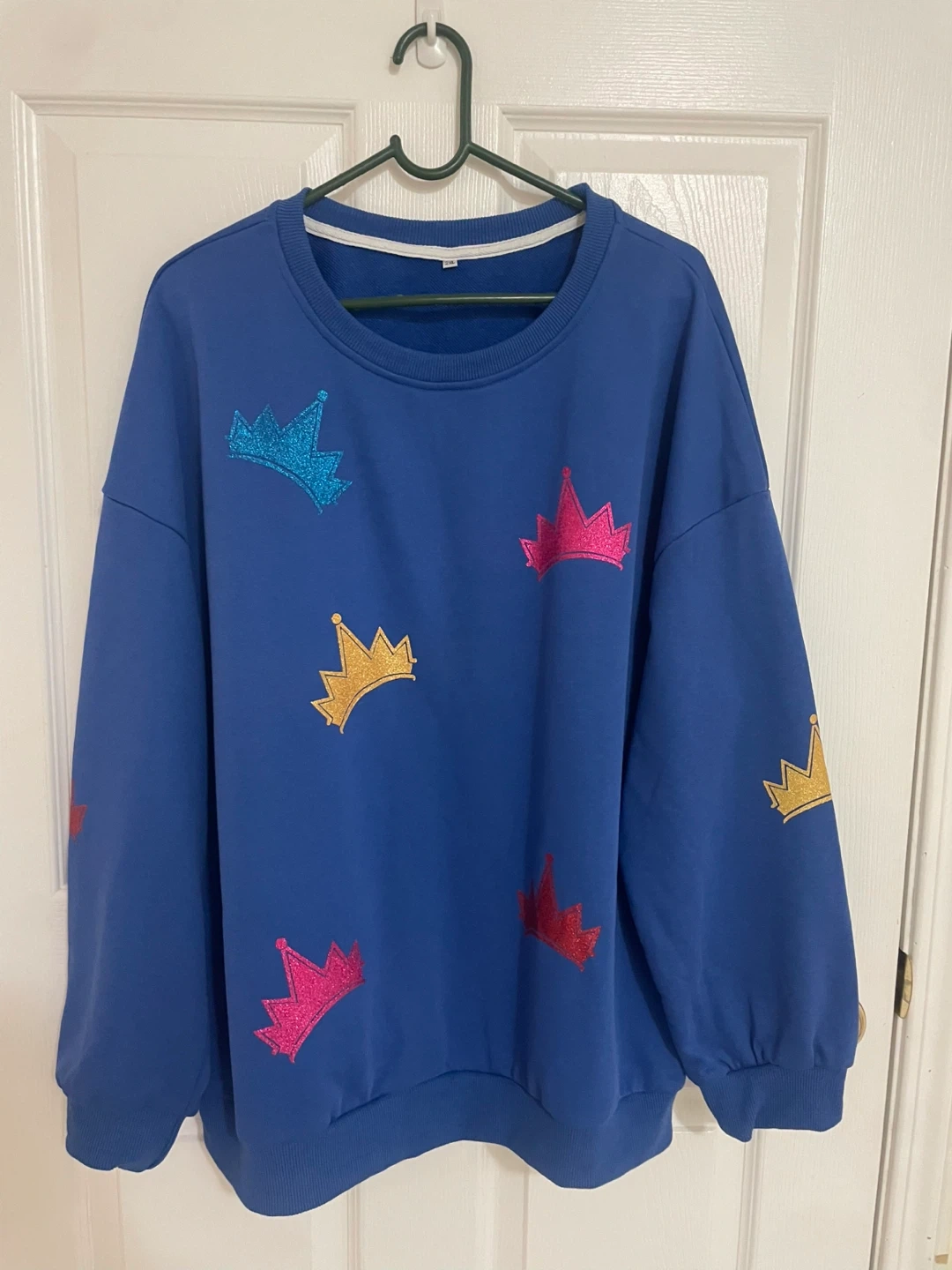 Cute blue sweatshirt with colourful crown prints! It's a size 2XL and in great condition. Perfect for adding a pop of colour to your wardrobe!