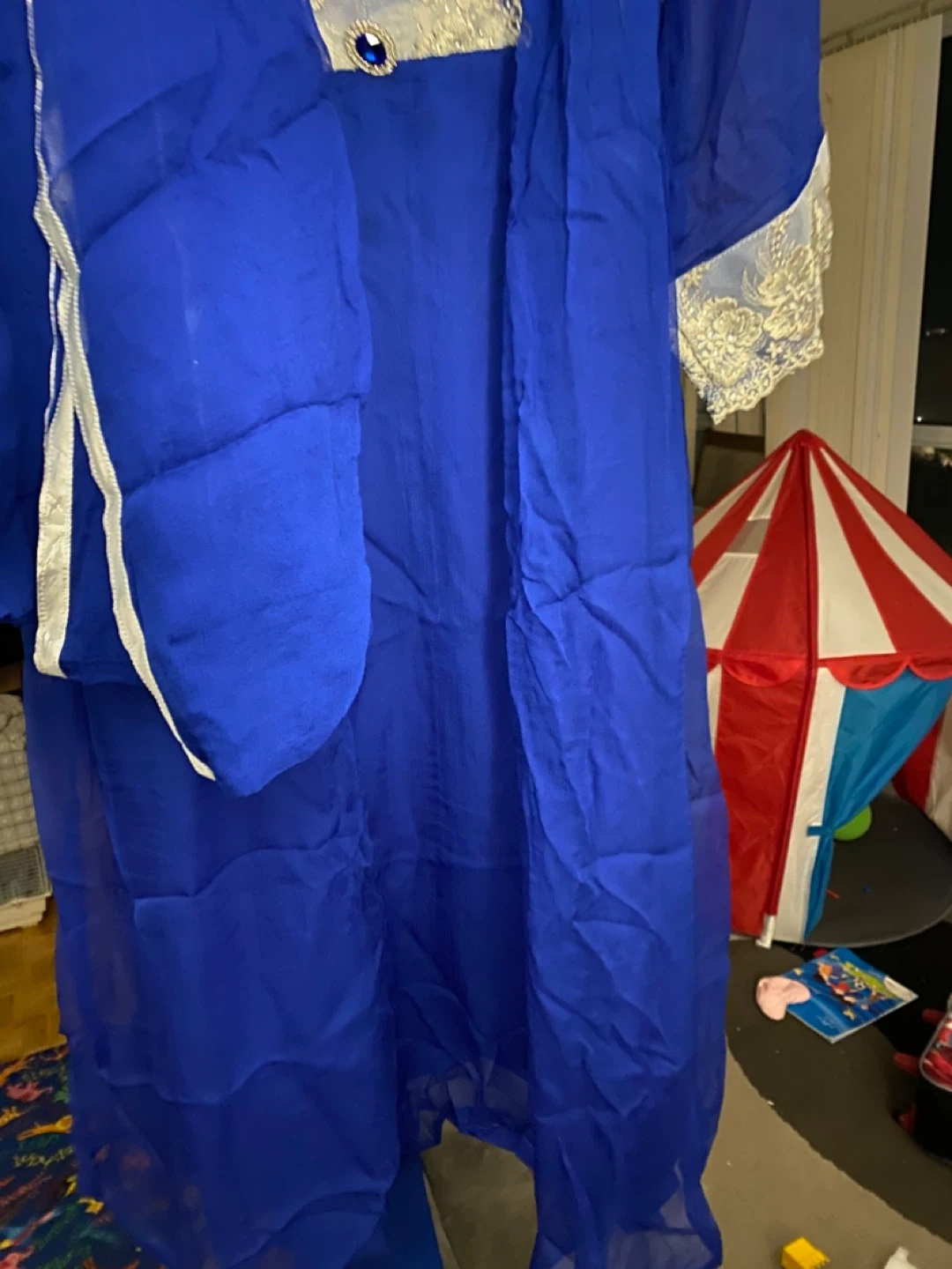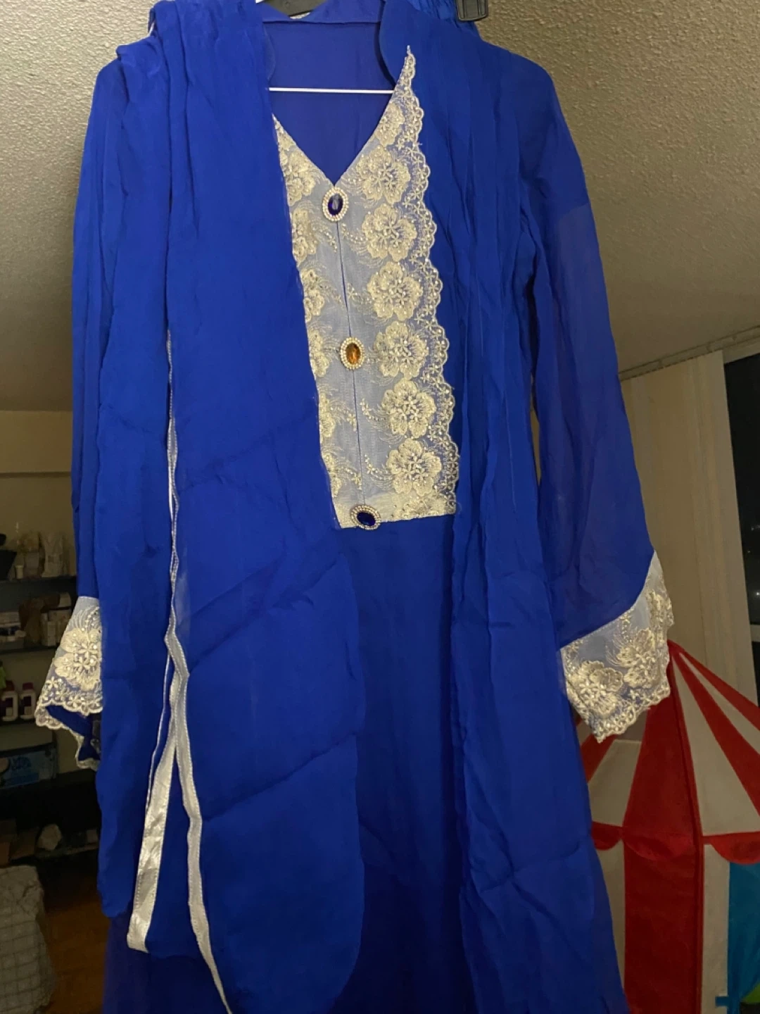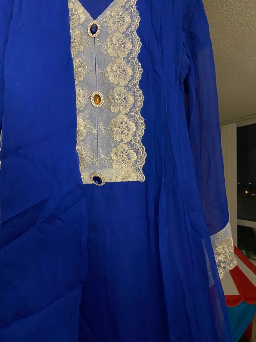 20Here's a lovely blue dress with intricate lace detailing! It features decorative buttons and a flowing design. It's perfect for adding a touch of elegance to any occasion it’s a frock with chooridaar