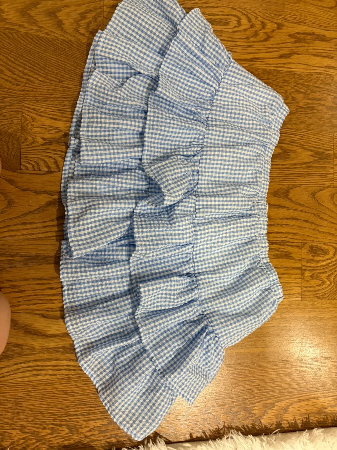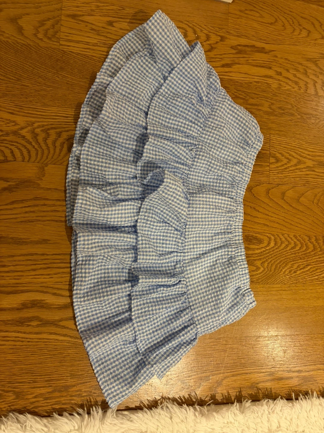10Cute blue gingham skirt with ruffle detailing! It's perfect for spring or summer. The material is lightweight and comfortable. It would look great dressed up or down