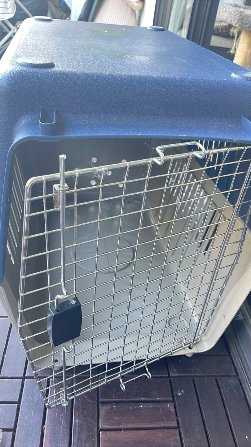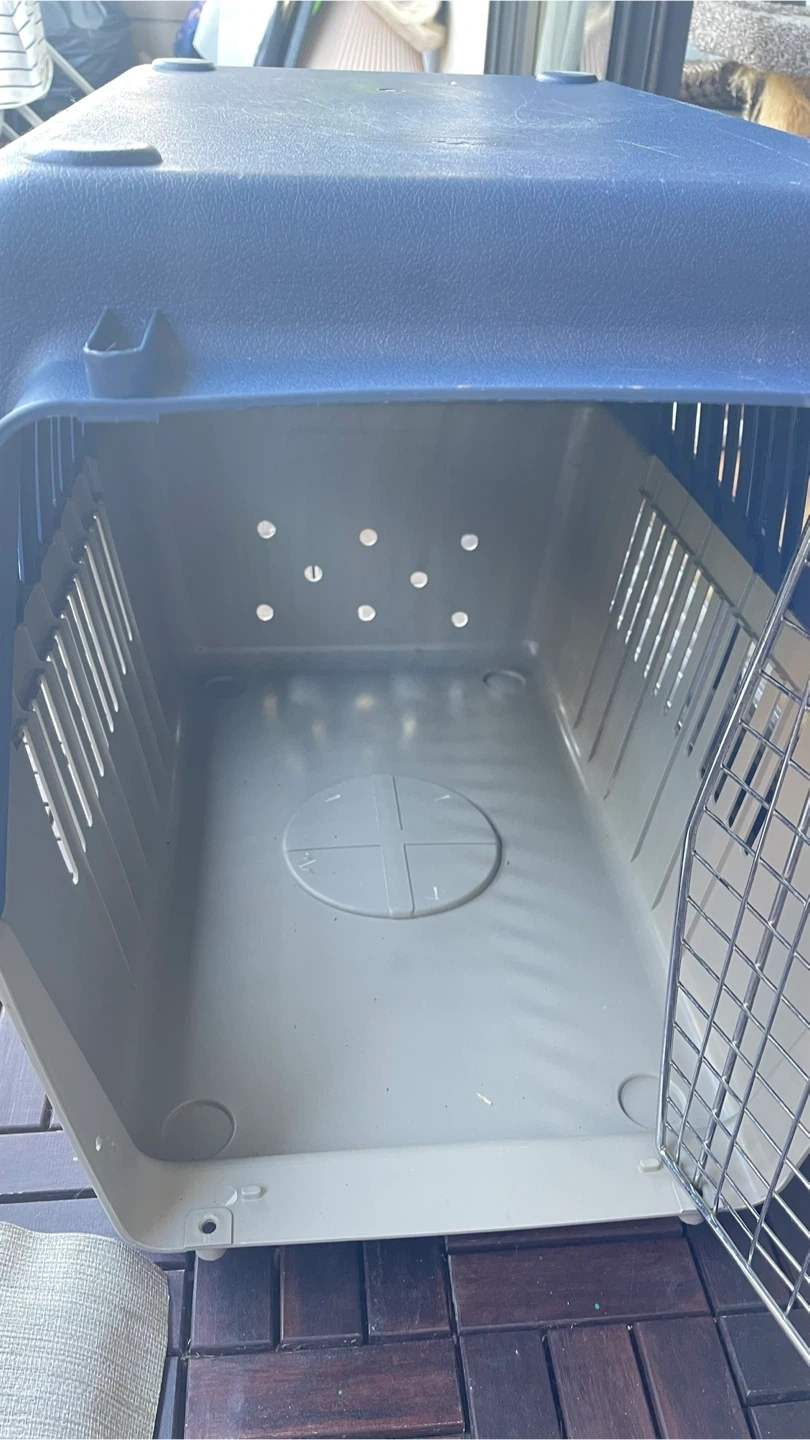 Selling a blue and gray pet carrier. It is in used condition, but still has plenty of life left! Perfect for vet visits or travel. Size included in the picture Slight rusty / a clean box Pick up in new Westminster Firm price!