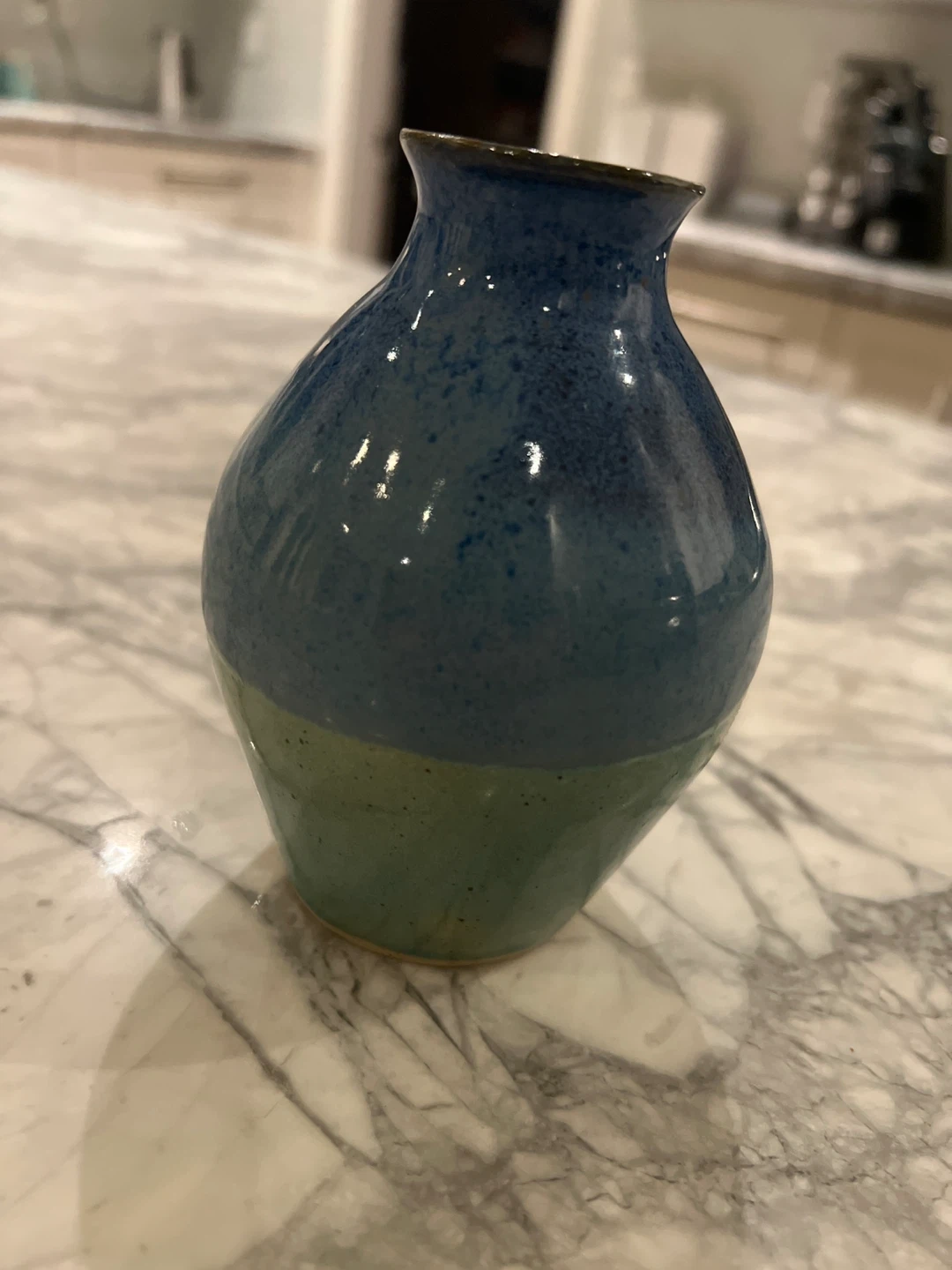 5A lovely blue and green ceramic vase. It would look great with some flowers!