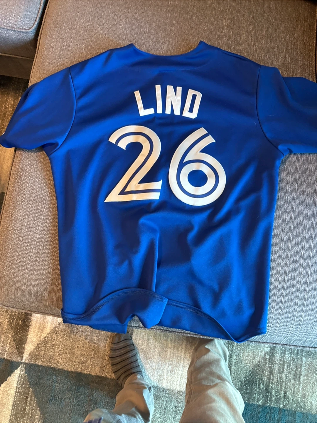 Selling a Blue Jays jersey, Lind #26. It's a vibrant blue and in great condition. Perfect for showing your team spirit!