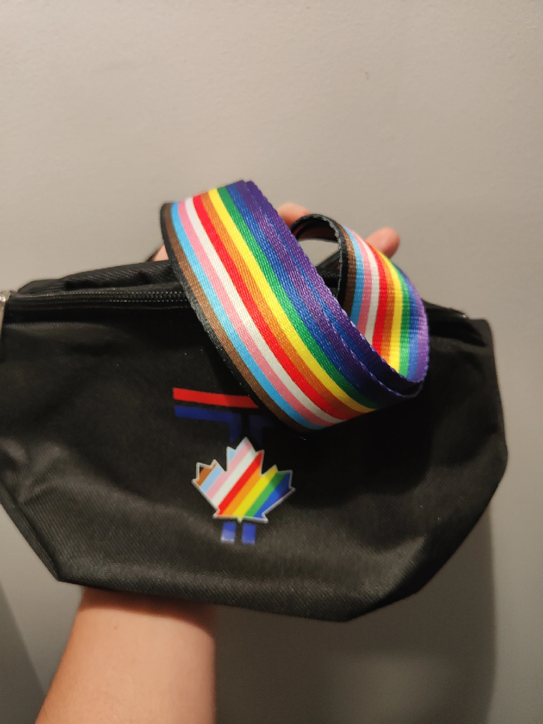 638Cute Blue Jays black fanny pack with rainbow strap! Perfect for showing your Jays pride. Go Jays!