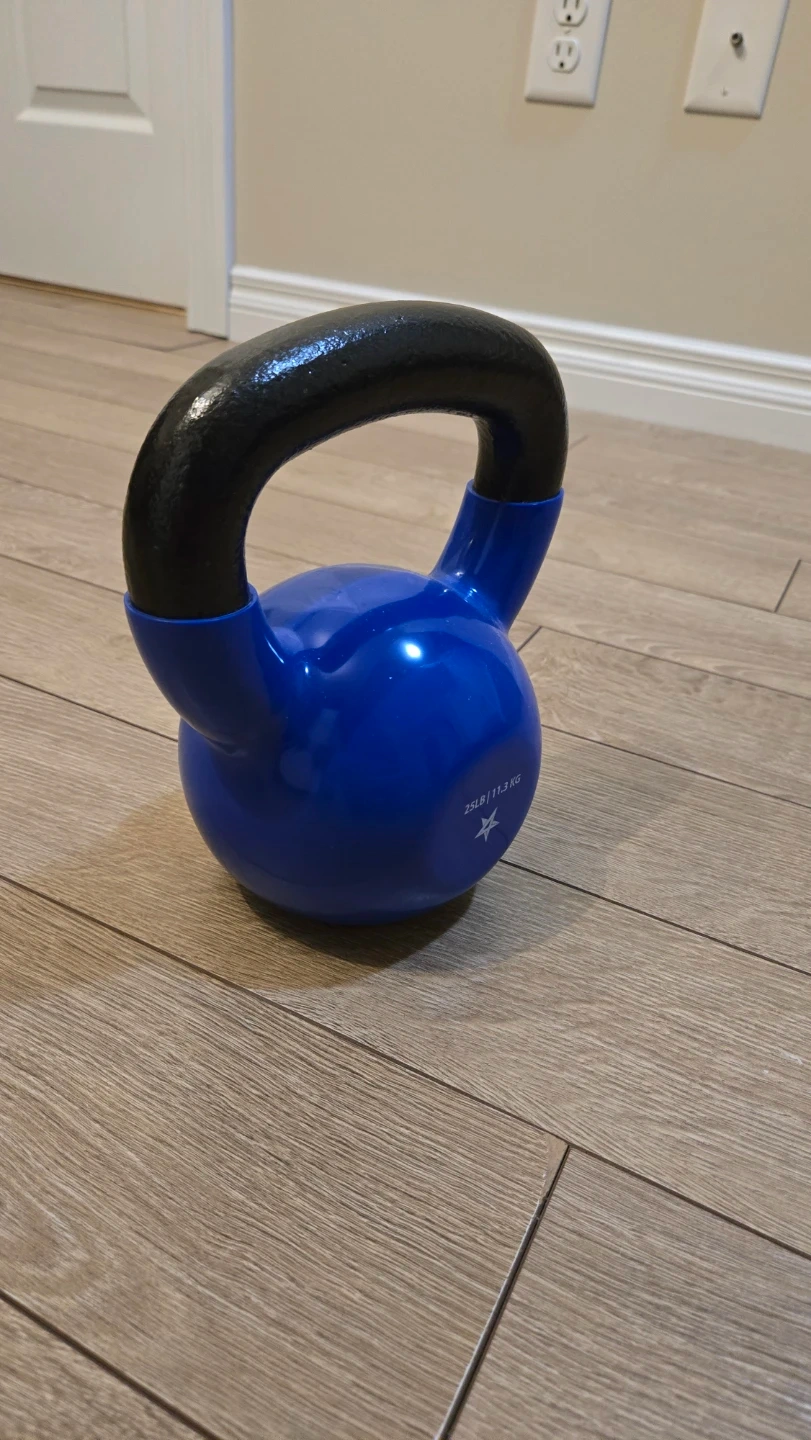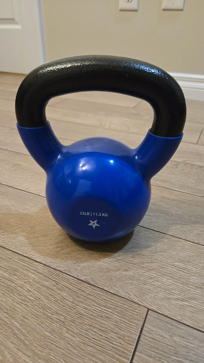 10Selling a blue kettlebell, it weighs 25lbs (11.3 kg). It's in great shape and ready for your workouts!