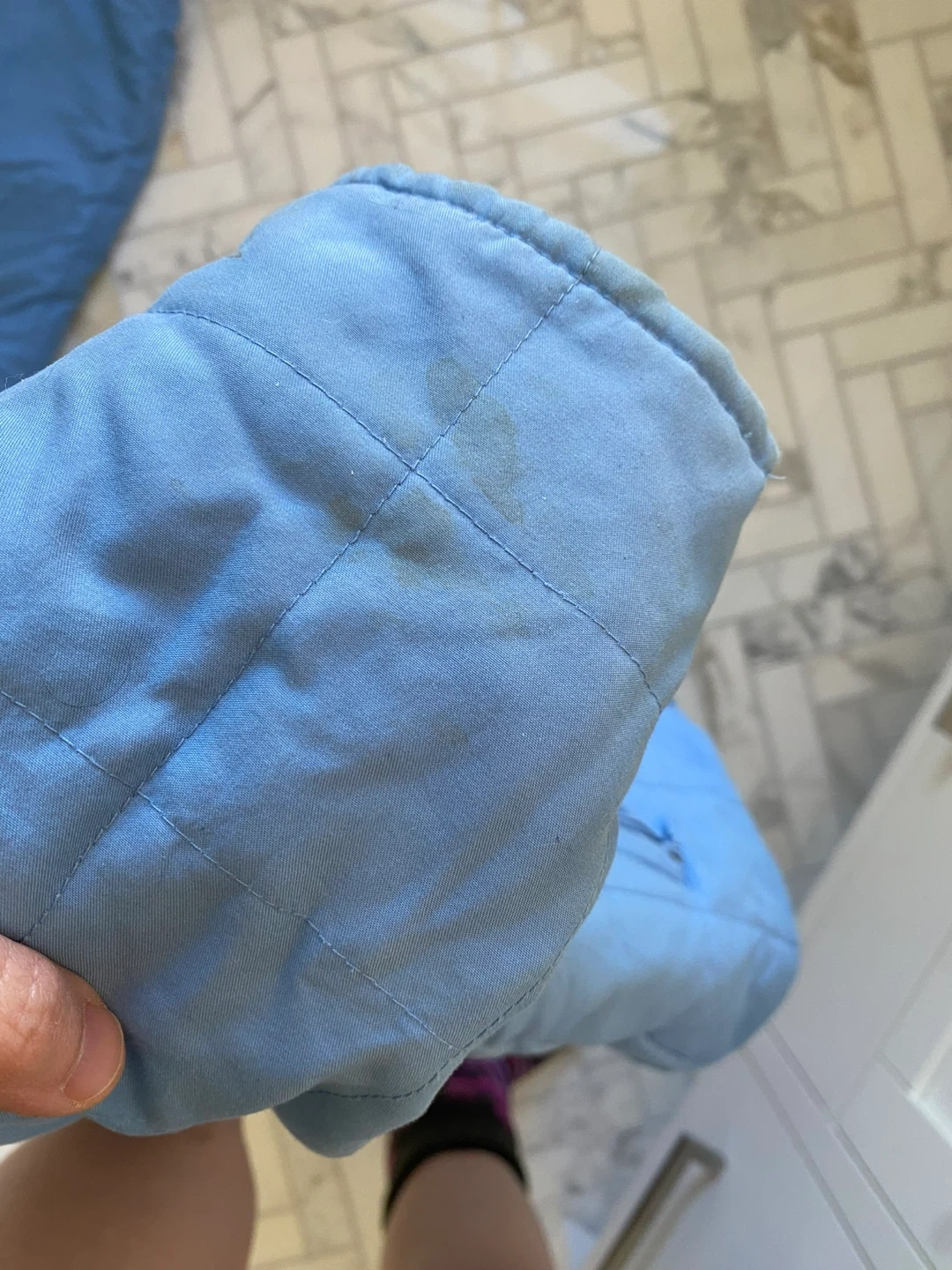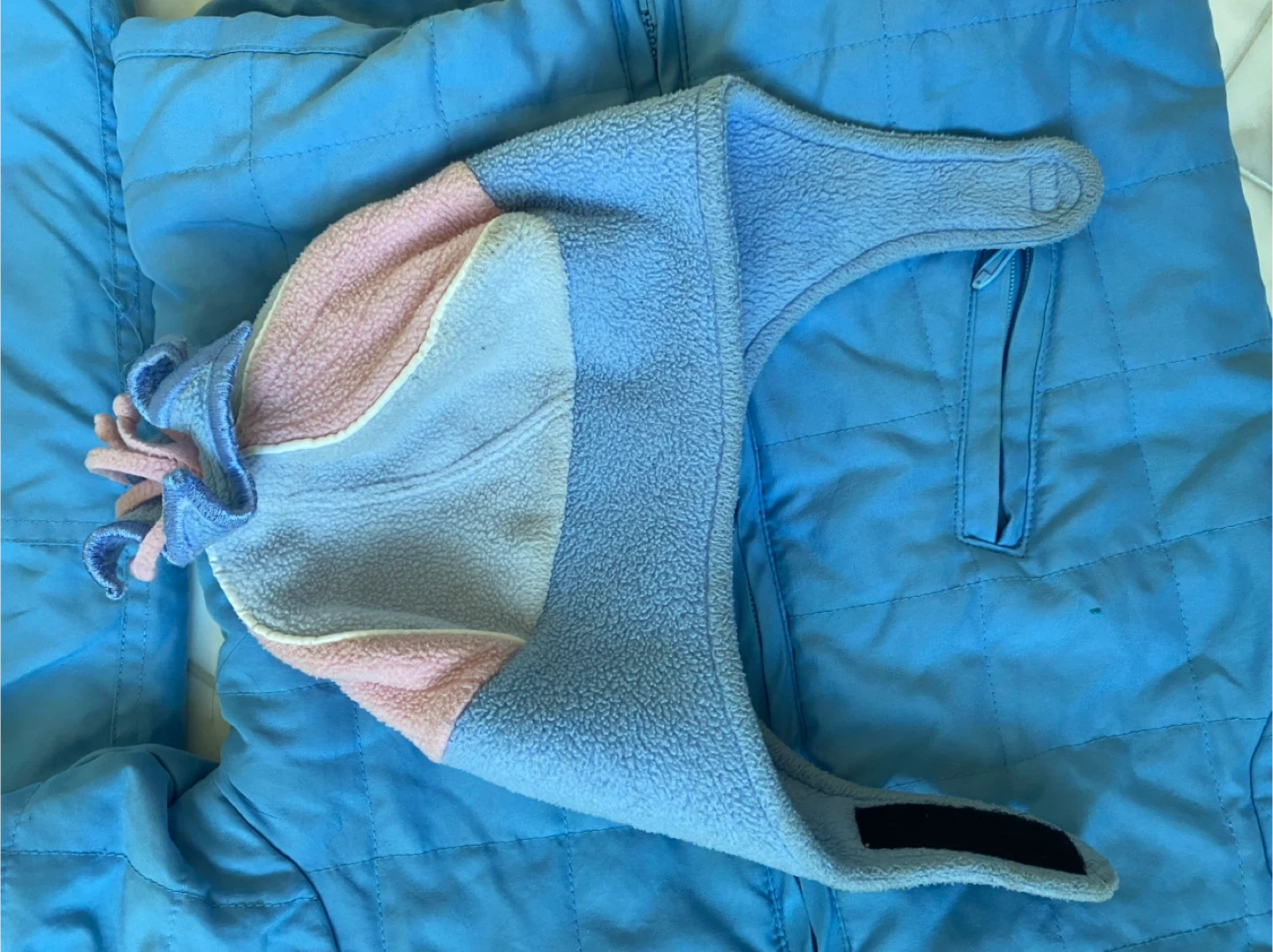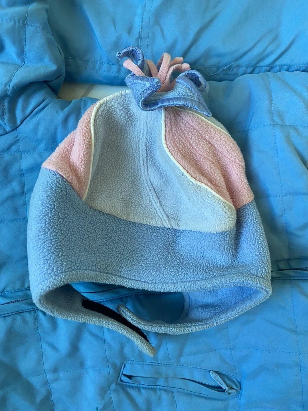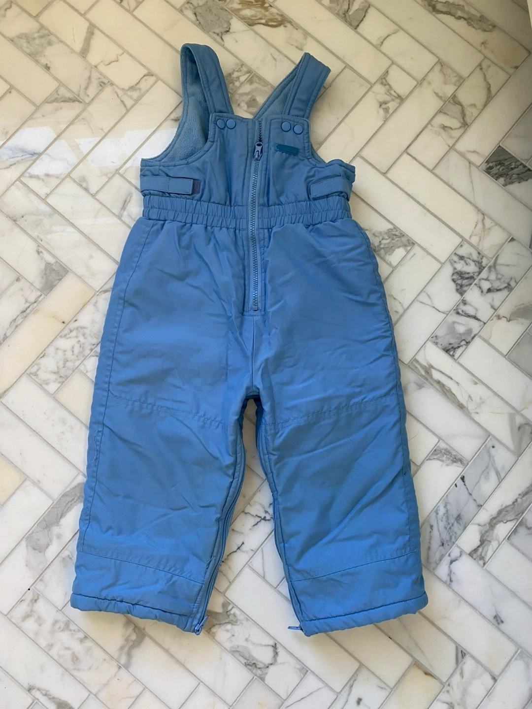0A cute and cozy blue snowsuit set for kids! Includes a jacket with a hood, overalls, and a matching hat to keep your little one warm during the winter months. Perfect for outdoor play and snowy adventures. Slight stain in sleeve, price adjusted accordingly.