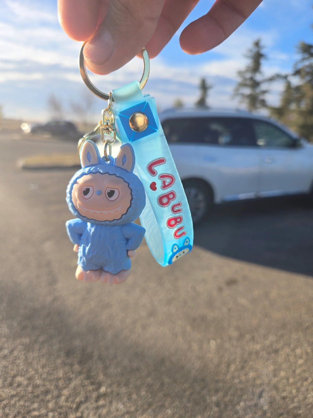 10Cute Labubu keychain, perfect for adding a bit of fun to your keys or bag! The keychain is in great condition and features a blue Labubu figure with a matching blue strap