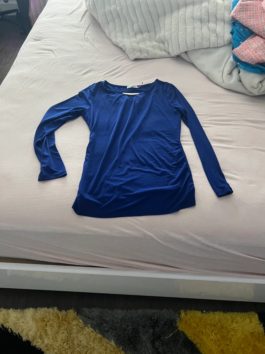 Here's a blue long sleeve top that's in great condition! It's a lovely shade of blue and would be a great addition to your wardrobe