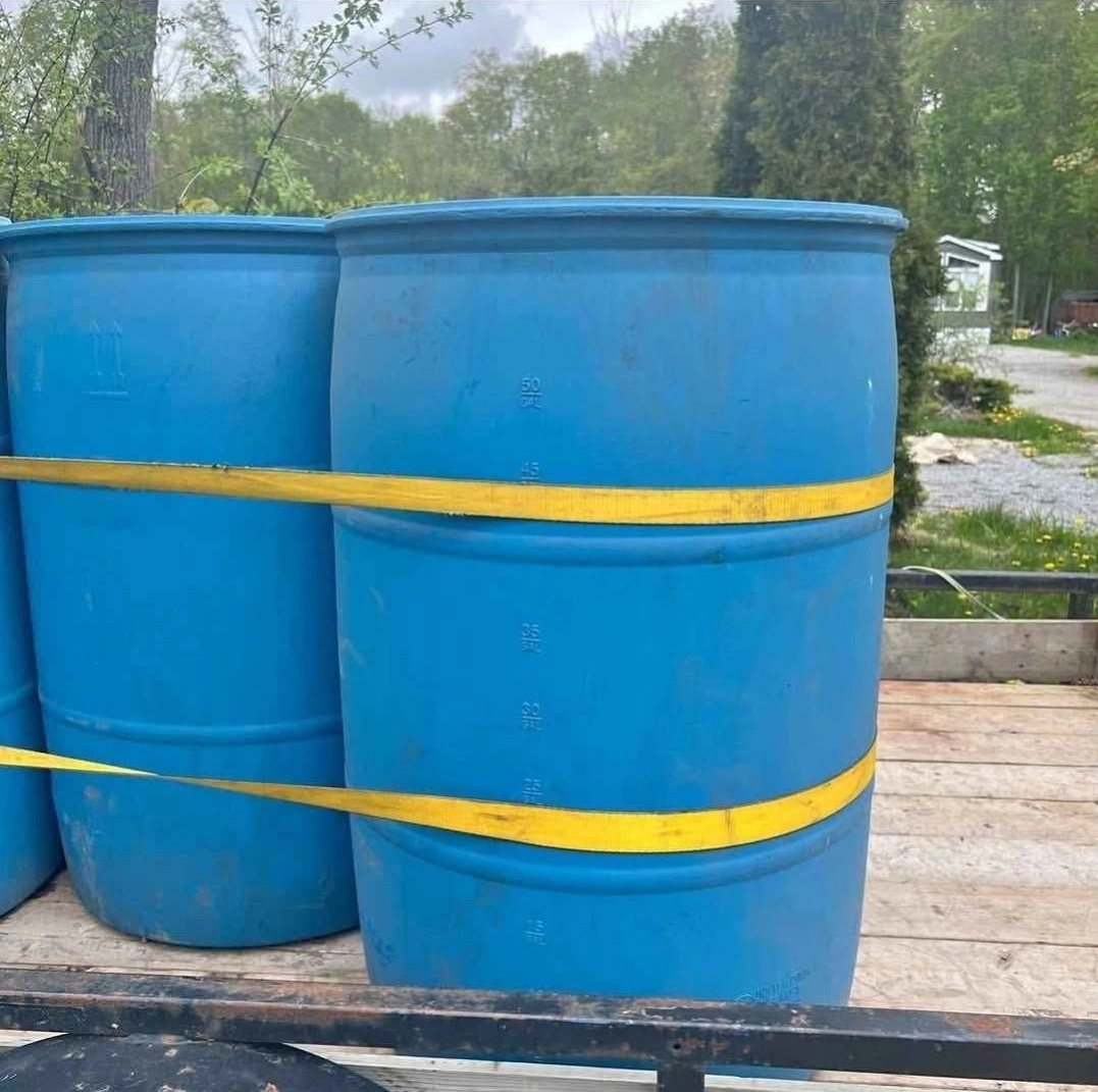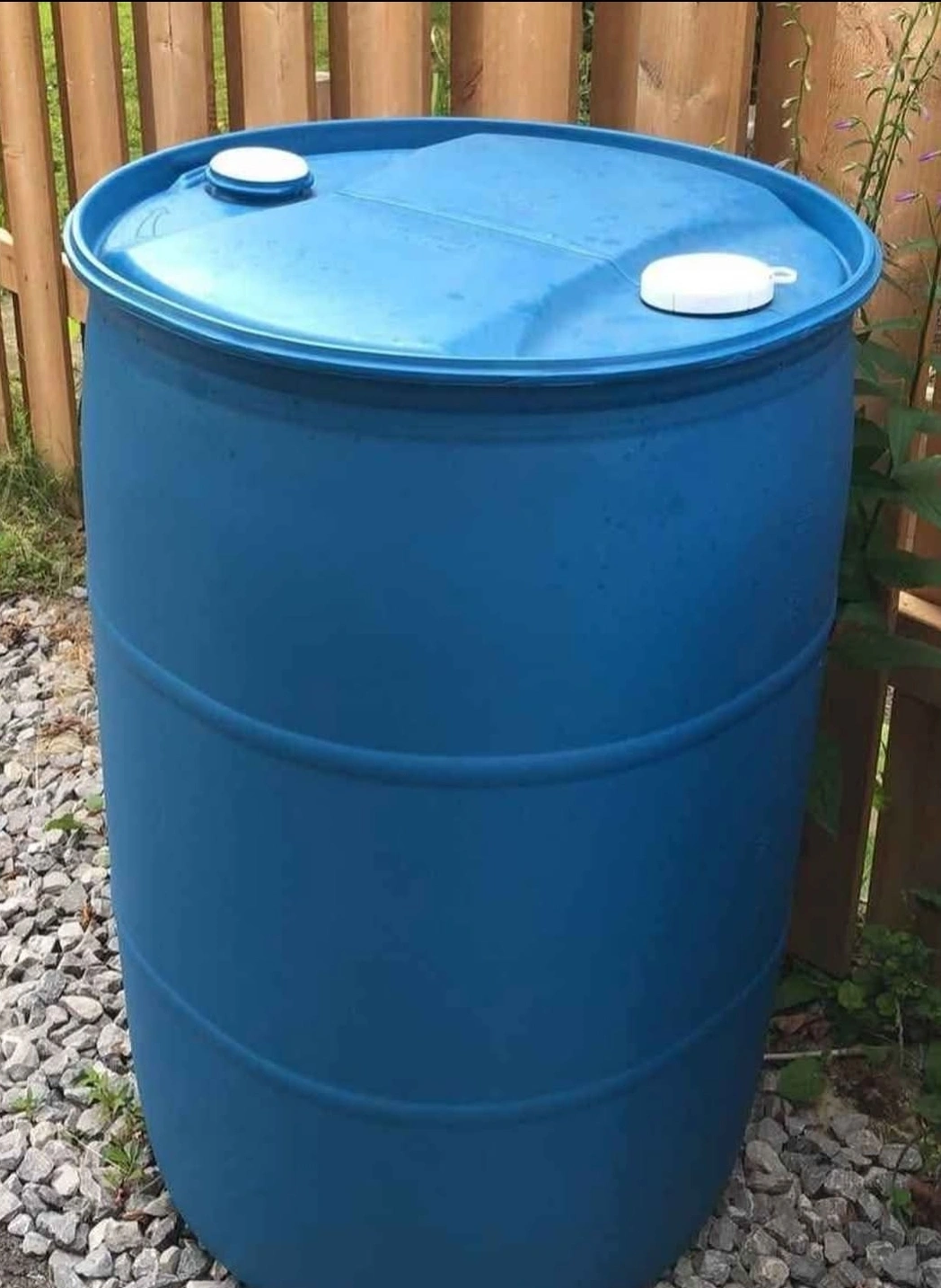 Selling a blue plastic 55-gallon drum. Great for storage or other uses. It's in good condition and ready to go!