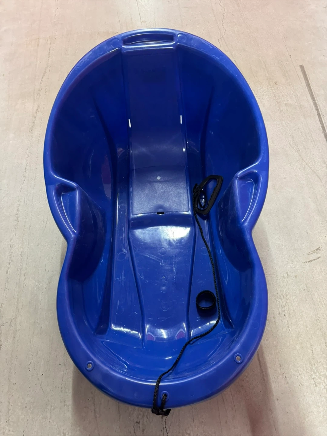 Selling a blue plastic toboggan sled, perfect for some winter fun! It's in great shape and ready for the snow