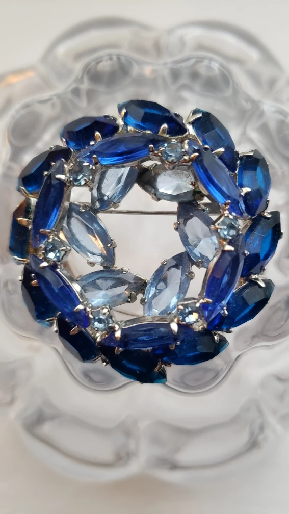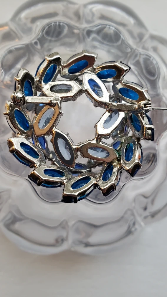 188Blue rhinestone brooch. Measures approximately 2 inches in diameter.
