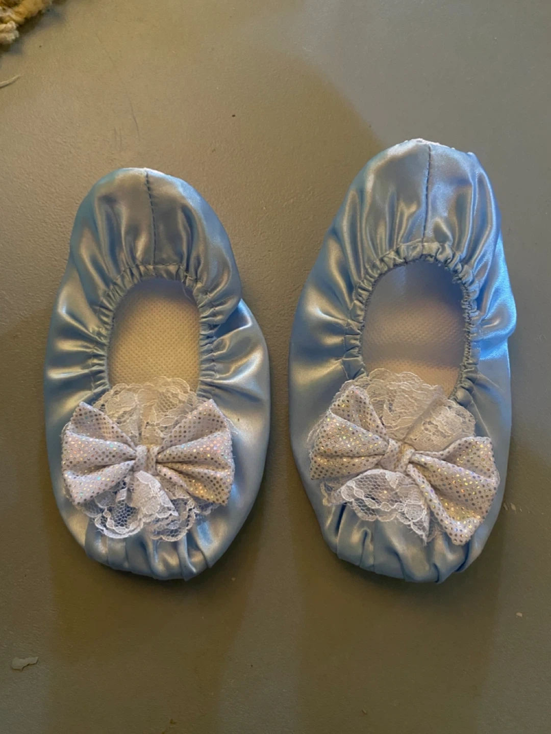 20These adorable baby shoes are made of a soft blue satin material and feature a cute bow. They're perfect for a special occasion or just to keep your little one's feet cozy!