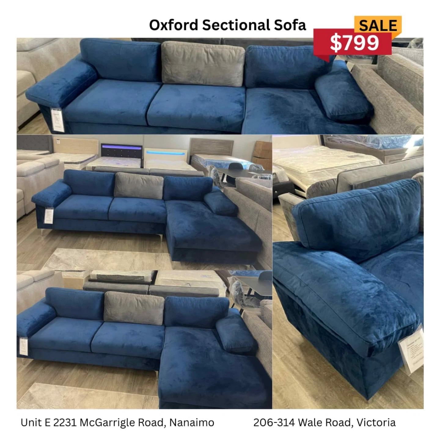 20The blue in style that matches your living room!😉 💙Dimension is 102” x 52” 💙Left or Right Chaise 💙Velvet Fabric 💙Washable Pillow Covers 📍206-314 Wale Road 📍Unit E 2231 McGarrigle Road www.furniturehideaway.ca *Brand new in Boxes with warranty*