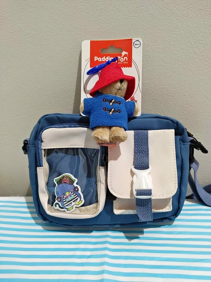 Brand new blue colorblock shoulder bag with a Paddington Bear charm.