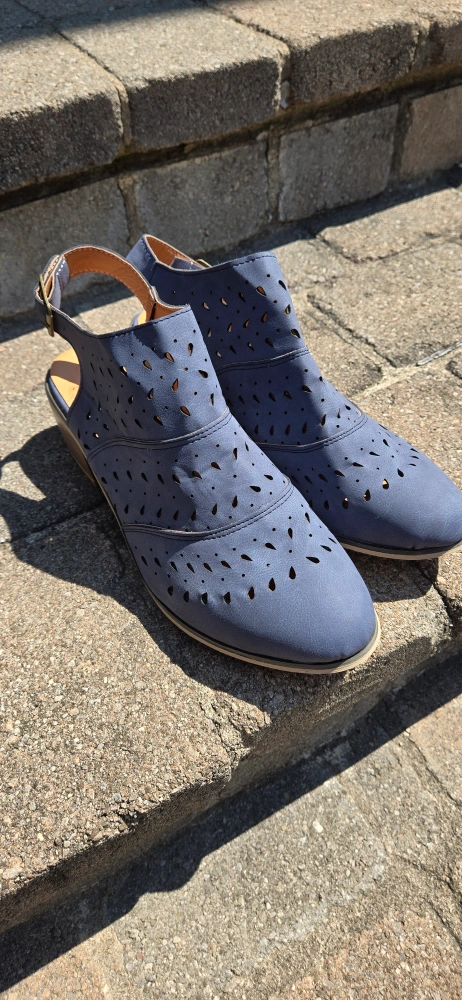 Cute blue slingback shoes in great condition! They are a size 8 and feature a stylish, perforated design. Perfect for adding a pop of colour to your outfit!